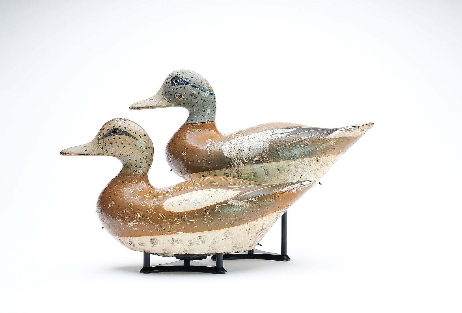 Charles Bergman (Astoria, Ore., 1856-1946) was the carver behind this pair of widgeons, 14 and 14½ inches long, which flapped to $24,000 ($12/18,000).
