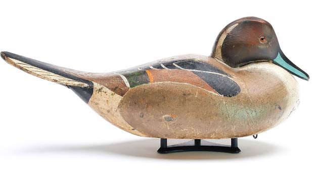 Top-lot status was awarded to this pintail drake in the beaver tail style by the Ward Brothers, 18 inches long, which had provenance to the Ron Gard collection; it landed just above estimate at $264,000 ($150/250,000).