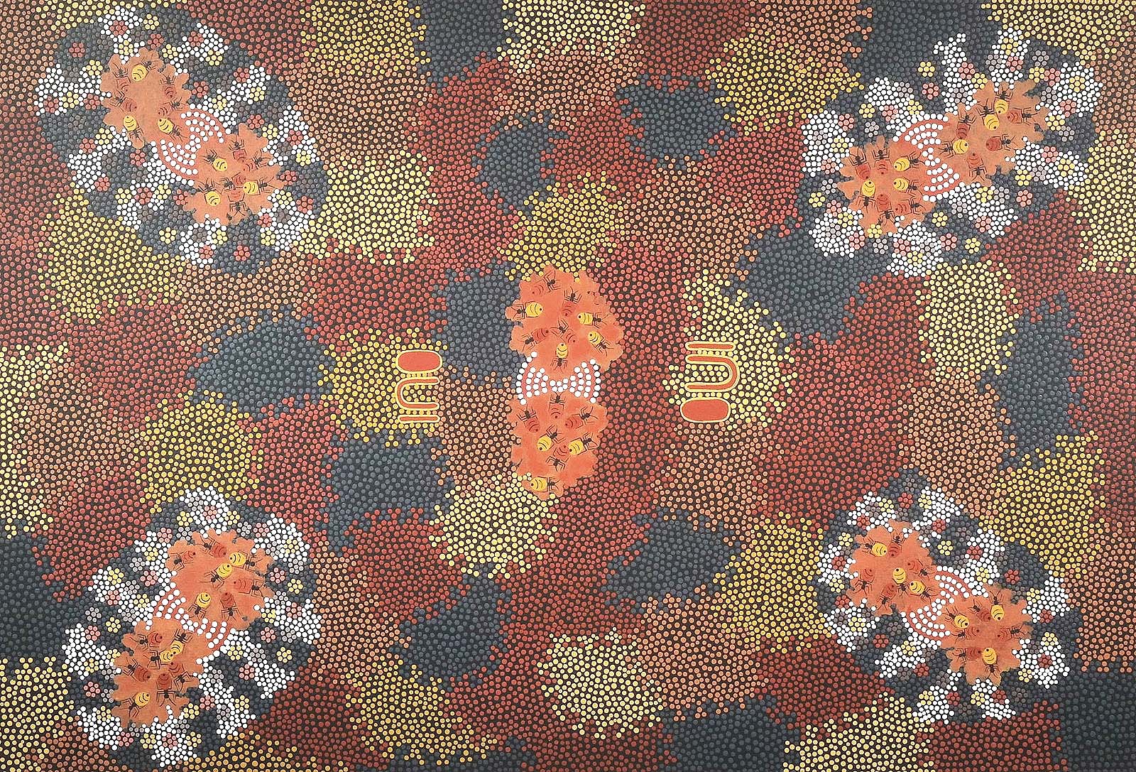 Earning $1,952 was this Aboriginal painting, oil on canvas, 40 by 55 inches framed($300/500).