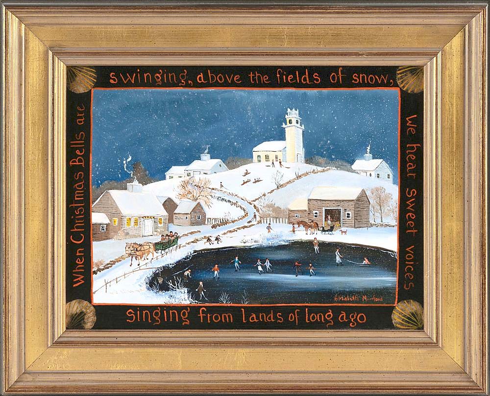 EAST DENNIS, MASS. — Eldred’s annual Holiday Sale on December 4 was billed as a “curated selection of couture, antiques and objets d’art” perfect for “unique gifts.” One of the highest prices of the day at $7,040 was Elizabeth Mumford’s “When Christmas Bells are swinging, above the fields of snow, We hear sweet voices singing from lands of long ago,” a 9-by-12-inch oil on panel painting. According to Cheryl Stewart, the painting came from a Massachusetts collection and sold to a local buyer. For information, 508-385-3116 or www.eldreds.com.