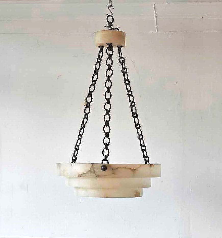 BELLPORT, N.Y. — Cornell’s January 24 Resolutions Auction featured nearly 600 lots, led by a vintage French Art Deco pendant light/chandelier. The light had a stepped alabaster bowl with six interior sockets, an alabaster collar and bronze chains for suspension. In total, the piece measured 30 inches in length and the bowl had a 17¾-inch diameter. It sold to an online buyer for $3,00 ($1,2/1,800). For information, www.cornellauctions.com or 631-289-9505.