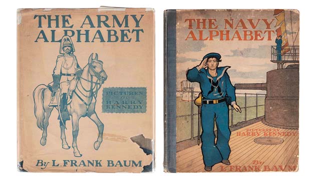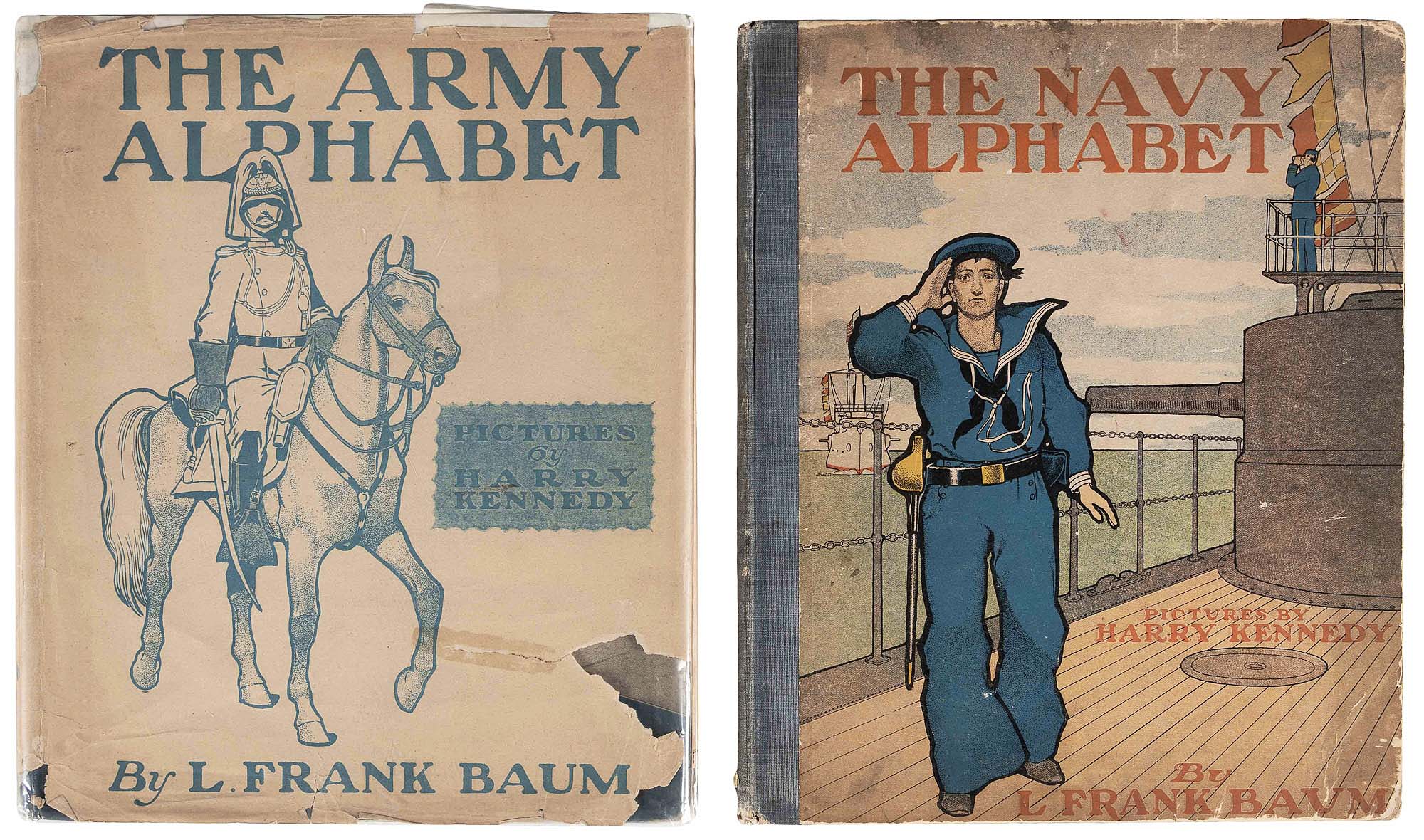 BERKELEY, CALIF. — PBA Galleries conducted a 430-lot auction of Rare and Antiquarian Books with Illustrated & Children’s Books, and the Dr Richard R. Rutter Collection of Oz on January 22. In a surprising turn of events, the sale’s top lot was a pair of children’s books by L. Frank Baum, illustrated by Harry Kennedy and with lettering by Charles Costello. The Army Alphabet and The Navy Alphabet were published in 1900 by the George M. Hill Company, and these second volumes had a signed handwritten inscription from the author to his brother Harry C. Baum, dated 1901. From the Rutter collection, these books earned $28,125 ($1/1,500). For information, www.pbagalleries.com or 415-989-2665.