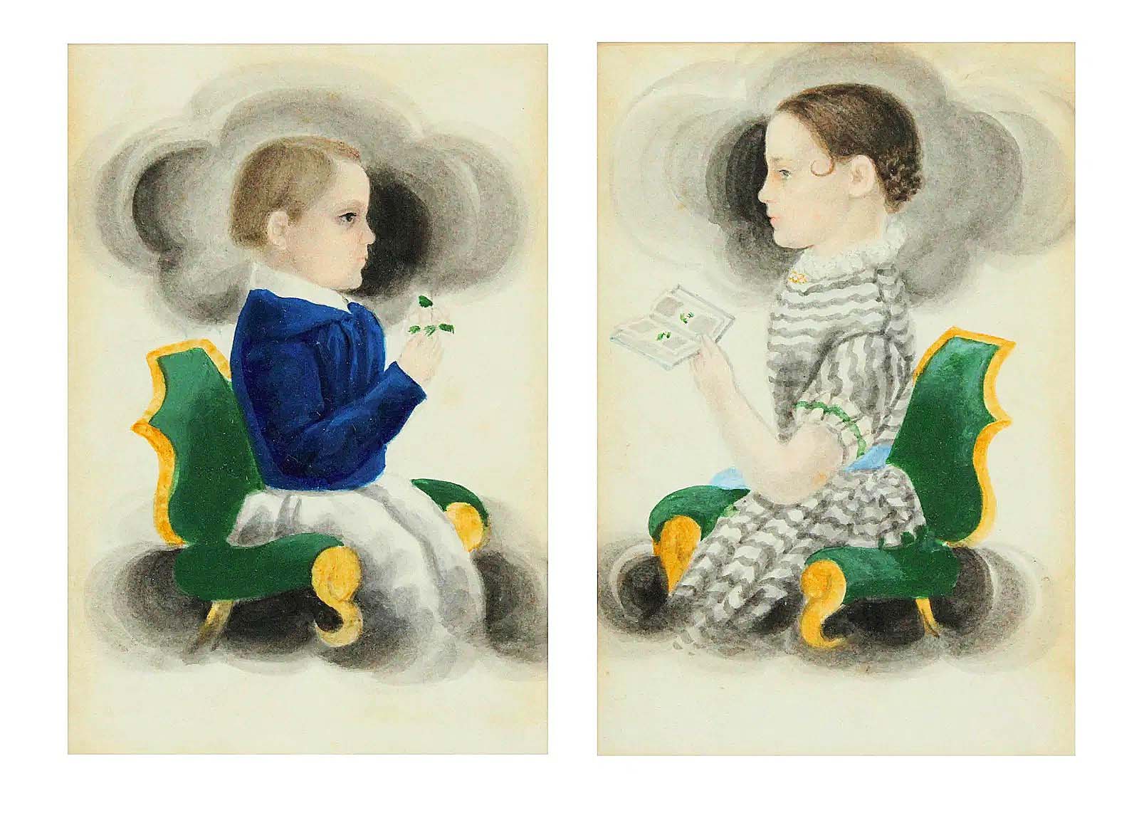 BLOOMFIELD, N.J. — A pair of watercolor portraits of a boy and girl by James Sandford Elsworth made $34,375 on January 21 at Nye & Company Auctioneers and Appraisers. Estimated at $2/3,000, these portraits attracted much interest and had earlier been featured in Small Folk A Celebration of Childhood in America by Brant and Cullman. The portraits of the young children had provenance to dealers George E. Schoellkopf and Nathan Liverant & Son. For information, www.nyeandcompany.com or 973-984-6900.
