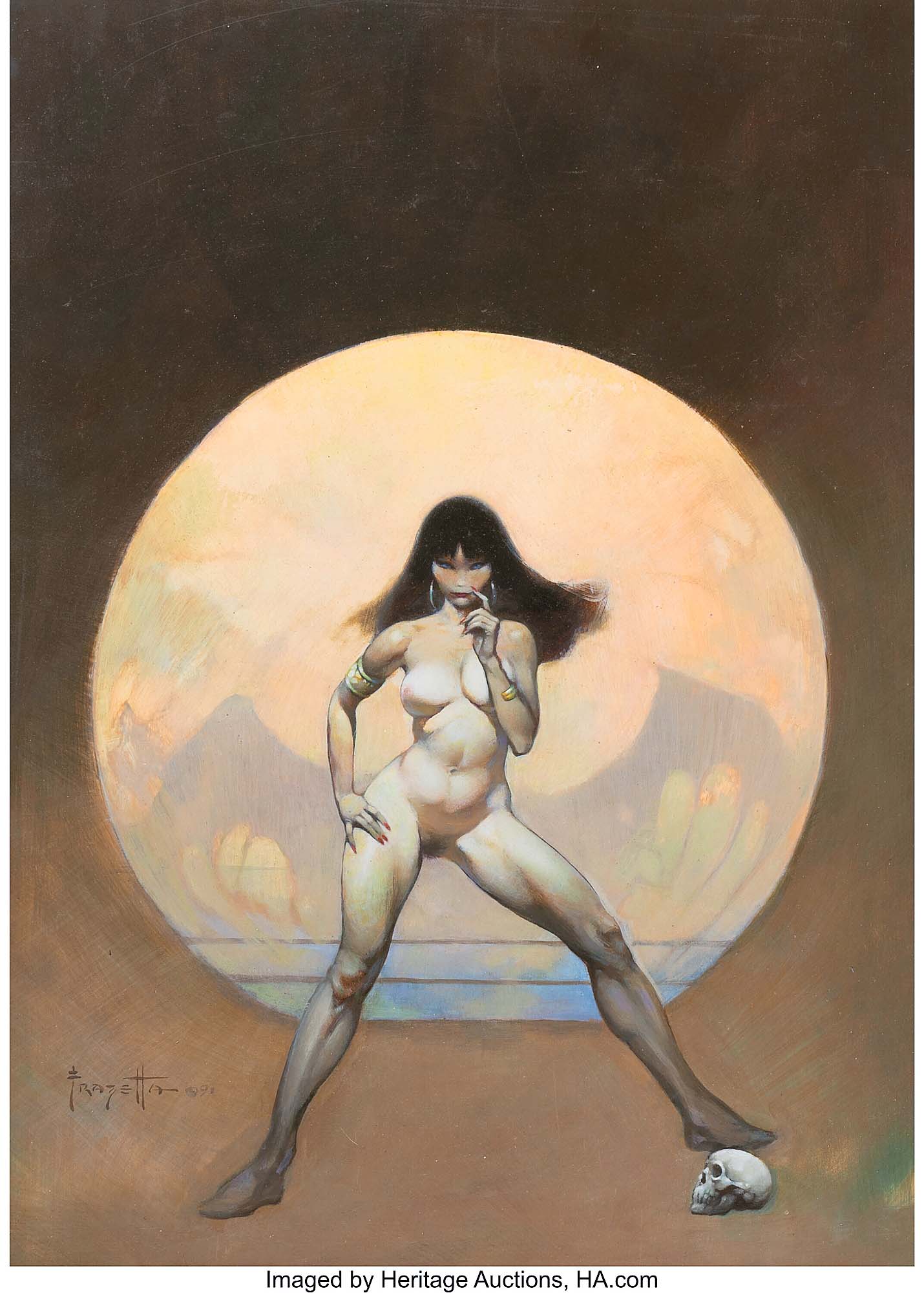 DALLAS — Frank Frazetta’s original art cover painting for Vampirella No. 1 (Warren, 1969) sold for $3,125,000 to lead Heritage’s February 27-March 1 Comic Art Signature Auction. Keen-eyed observers might notice a difference between how the character appeared on the cover of the issue and how she now appears on canvas. Frazetta was known to tinker with his originals even after they had already been published elsewhere. In this case, he painted over the Drakulon Queen’s outfit and boots to leave her wearing nothing but an armband and a bracelet. For information, www.ha.com or 214-528-3500.
