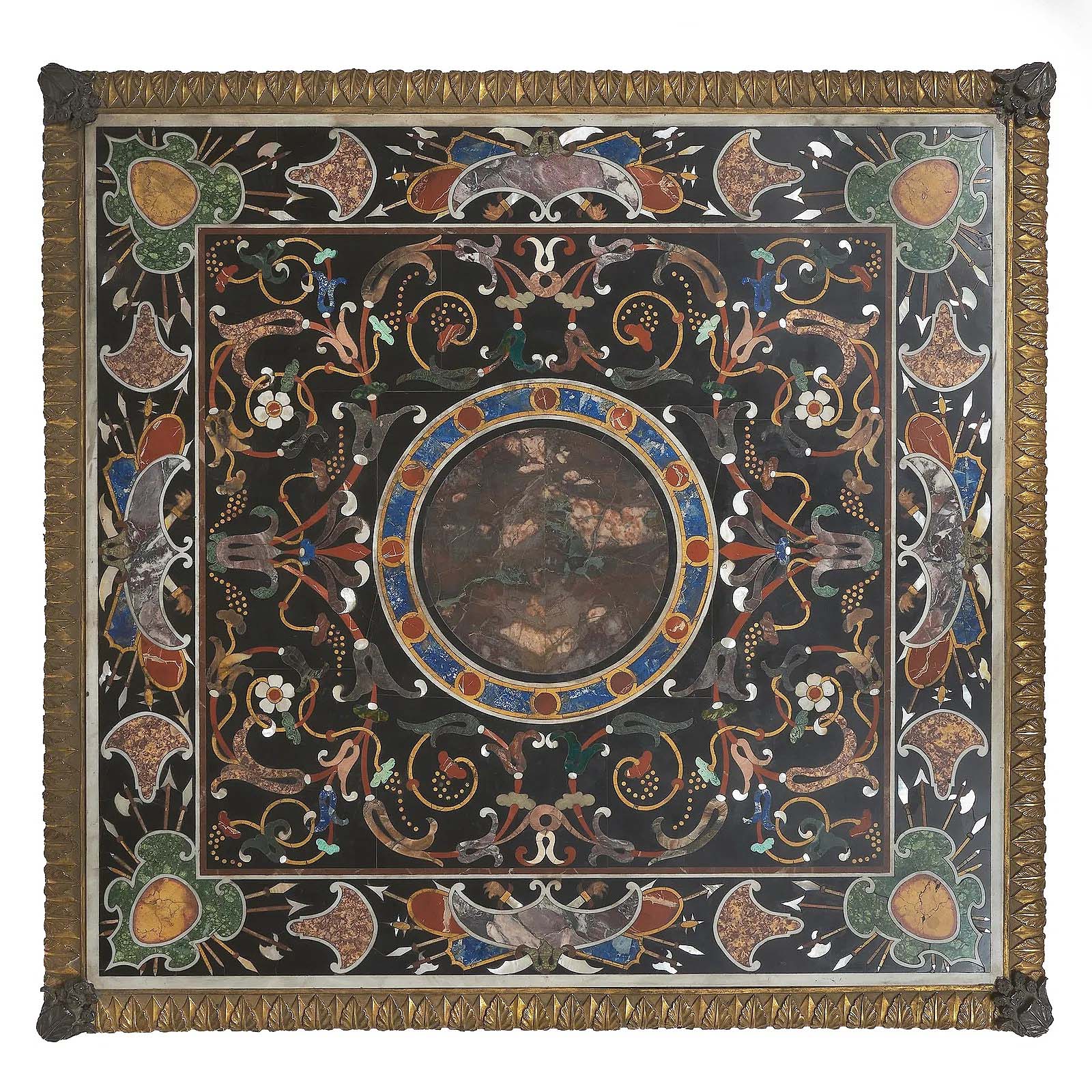 HUDSON, N.Y. — An Italian gilt-and patinated-bronze mounted pietra dura and mother-of-pearl square tabletop overperformed its $5/10,000 estimate to sell for $49,125 at Stair on February 26 in its auction of property from The Fortress, a historic home in Troy, N.Y. The tabletop was lavishly decorated and measured 45½ inches by 4 feet. For information, www.stairgalleries.com or 518-751-1000.