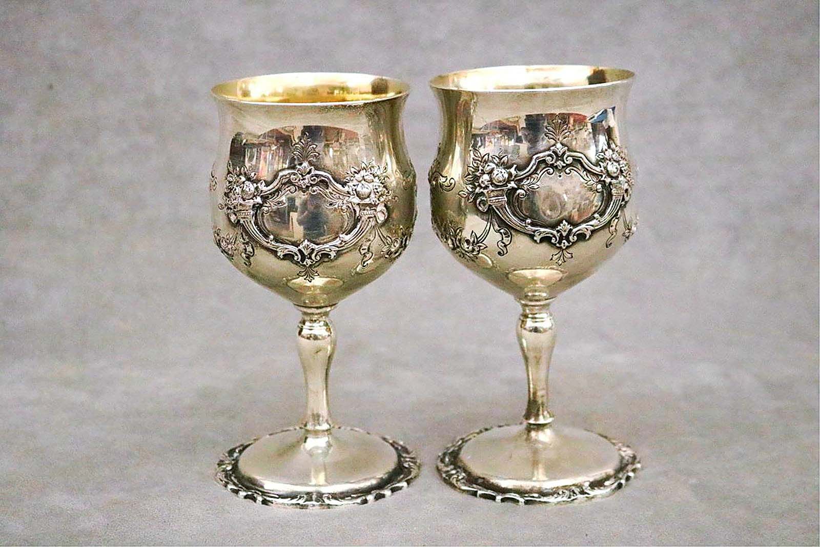 CHEVY CHASE, MD. — In Sloans & Kenyon’s April 2 Estate Catalogue Auction, a set of 12 sterling silver goblets were bid to the highest price. Made by Reed & Barton in the Francis I pattern, each featured a high-relief cartouche with cornucopias and additional floral swag decoration. With vermeil interiors, the vessels measured 6⅜ inches tall each and had a total weight of 96 troy ounces. The set sold for $13,530 ($3,5/4,500). For information, www.sloansandkenyon.com or 301-634-2330.