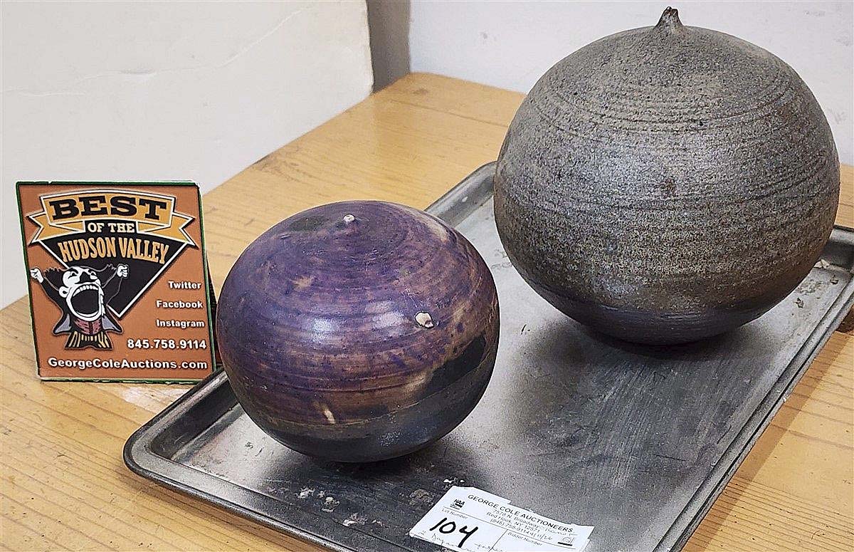 RED HOOK, N.Y. — On April 11, George Cole Auctions conducted its Select Quality Hudson Valley Estate Auction, which featured more than 520 lots of fresh-to-market antique and estate items. The highest earning lot, far surpassing its $150-$225 estimate, was a lot of two Japanese closed-form spherical ceramic pottery pieces, which sold for $7,995. One was purple and the other was a mix of gray hues. For information, 845-758-9114 or www.georgecoleauctions.com.