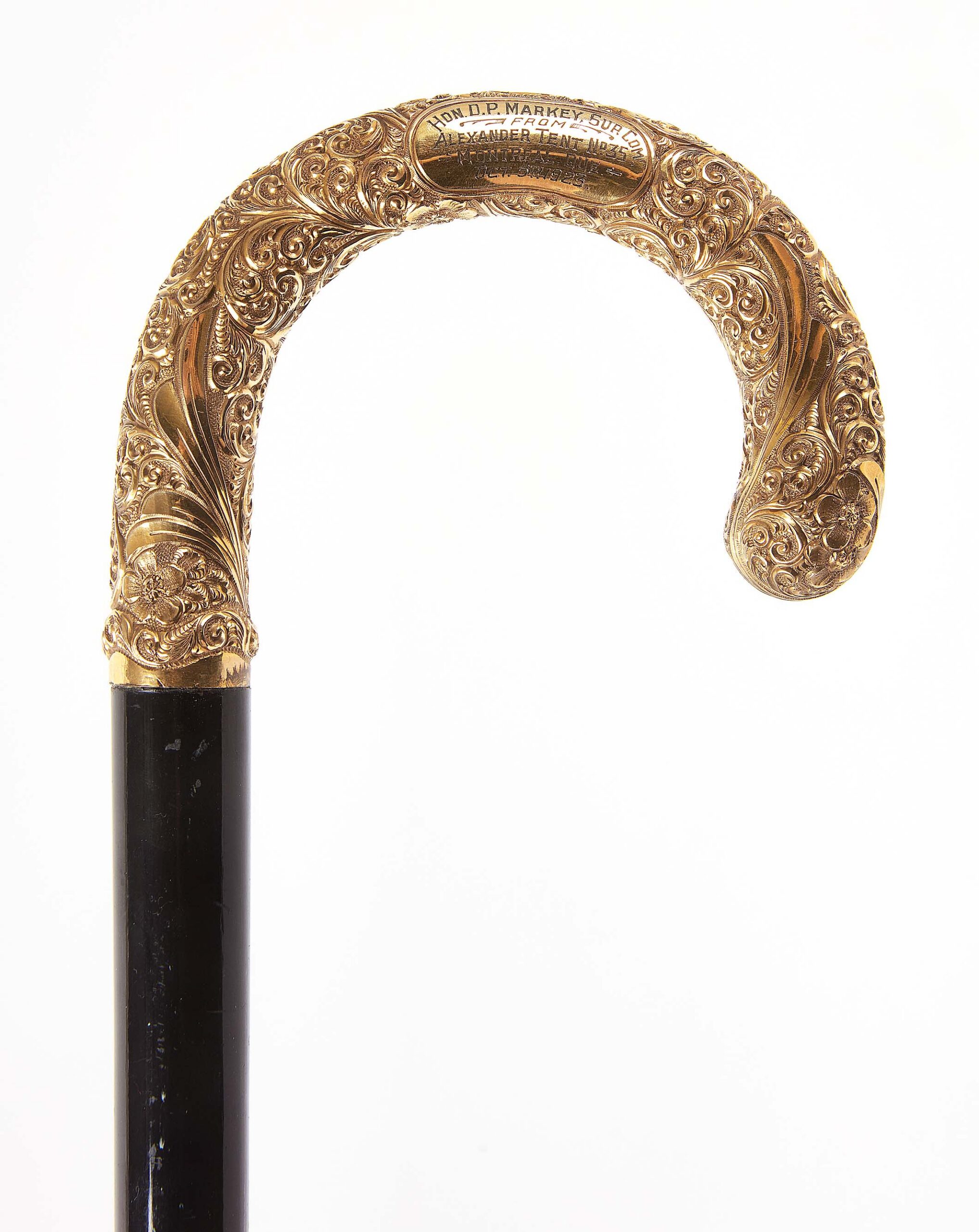 BRANFORD, CONN. — New England Auctions conducted a 628-lot Estates + Collections auction April 15-16. Astounding its $400/600 estimate, a 10K gold presentation cane finished as the sale’s top lot when it closed for $13,100. On an ebonized wood shaft, the engraved gold handle was marked “Hon. D. P. Markey Sup. Com. from Alexander Tent no. 35 Montreal Que, Oct 5th, 1923.” For information, www.newenglandauctions.com or 475-234-5120.