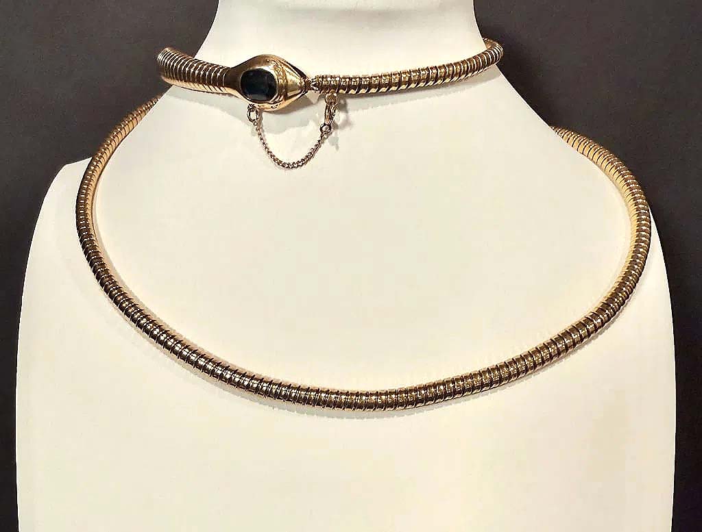 NORWOOD, N.J. — An 18K long gas pipe-style snake necklace/bracelet commanded attention at Sterling Associates on April 15, when it sold for $7,040, just over its $5/6,000 estimate. For information, www.antiquenj.com or 201-768-1140.