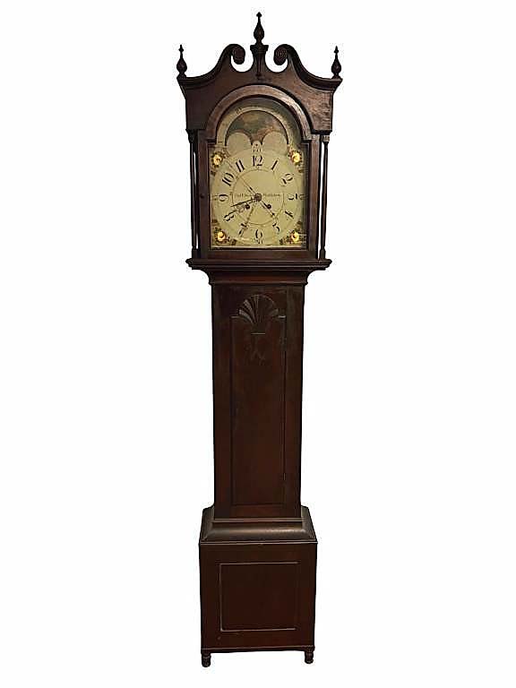 Ticking to $1,680 was this early Pennsylvania tall case clock, 98 inches high by 20½ inches wide by 11½ inches deep, which was signed by Bethlehem, Penn., clockmaker Charles F. Beckel.