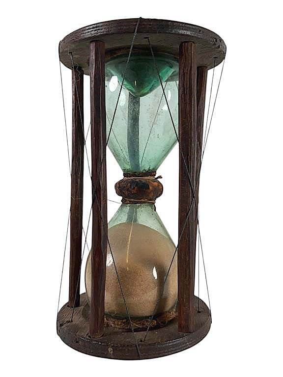 Time was ticking on this antique wooden hourglass with a blown glass vessel, 7 inches tall, which sold to its new owner for $840 before the sands ran out.