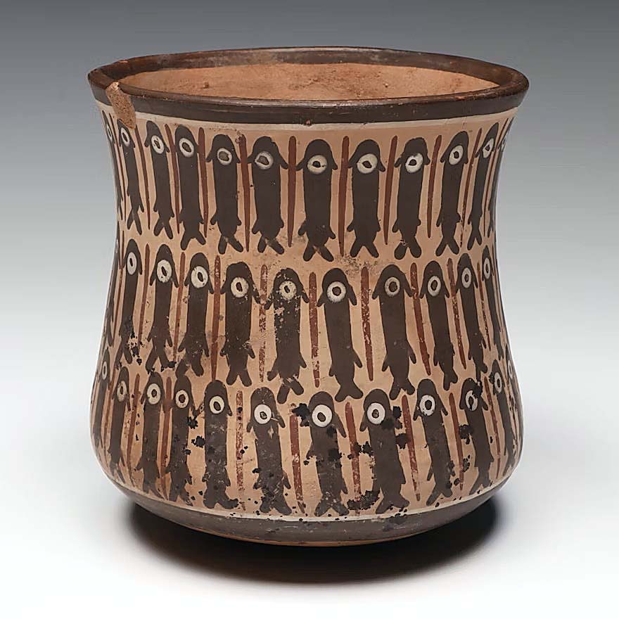 This Nasca polychrome ceramic jar, First to Sixth Century, realized $607.