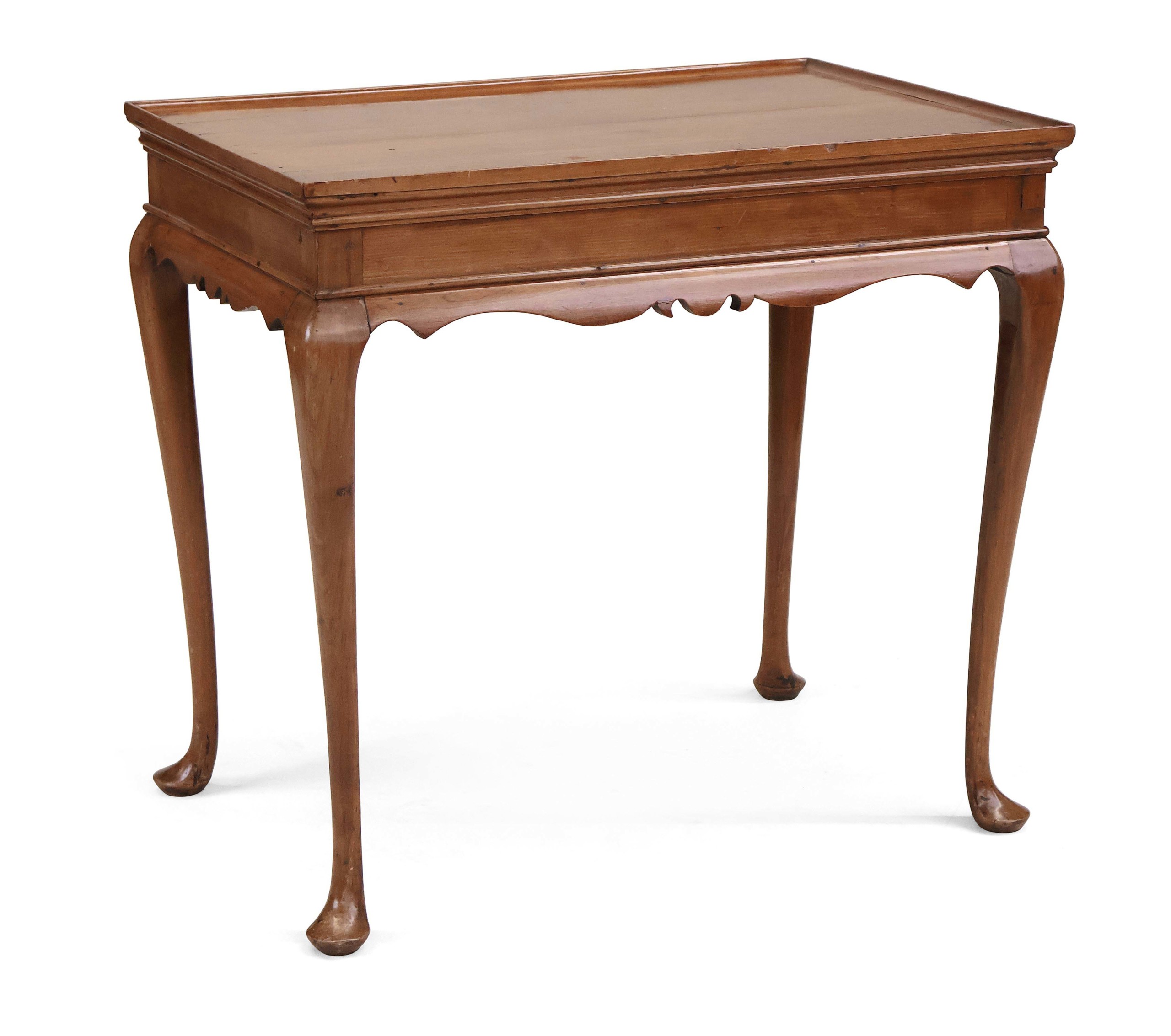 The highest price of the sale was achieved by this Queen Anne cherrywood tray-top tea table, probably Connecticut, circa 1750-70, 26 inches high with a 27¾-by-19-inch top; it went out at $16,250 ($5/10,000).