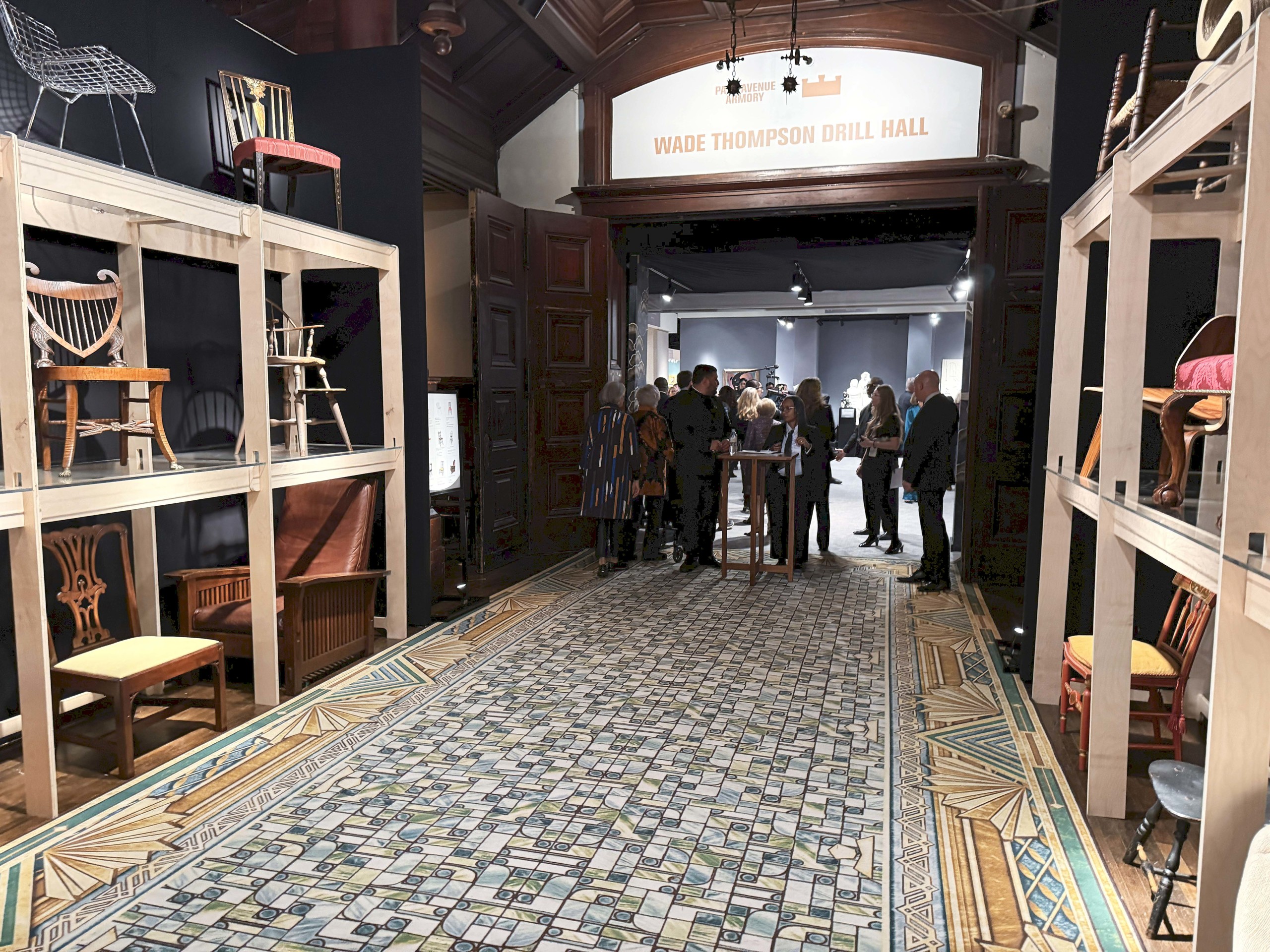 From the Armory’s front to back, this year’s presentation was an exercise in refined storytelling. Visitors entered the Wade Thompson Drill Hall through “The American Chair: 250 Years of Form,” an exhibition organized in collaboration with Alexandra Kirtley, the Montgomery-Garvan curator of American decorative arts at the Philadelphia Museum of Art. Sourced from nine lenders, “The American Chair” presented seating — stacked Hollywood Squares-style in a grid — as sculpture, proceeding from a Pilgrim Century banister-back armchair, courtesy of Preservation Long Island, to a circa 1904 Stickley armchair lent by Geoffrey Diner Gallery and a 1972 corrugated cardboard “Wiggle” chair supplied by manufacturer MillerKnoll.