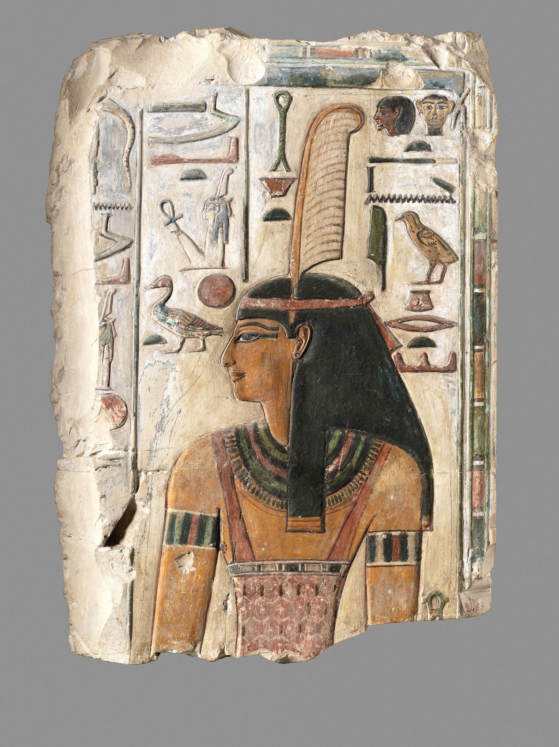 Relief of the Goddess Maat, circa 1294-1279 BCE, stone, limestone, paint. Museo Archeologico Nazionale di Firenze, Florence (2469). Photo by Anna-Marie Kellen. © The Metropolitan Museum of Art.