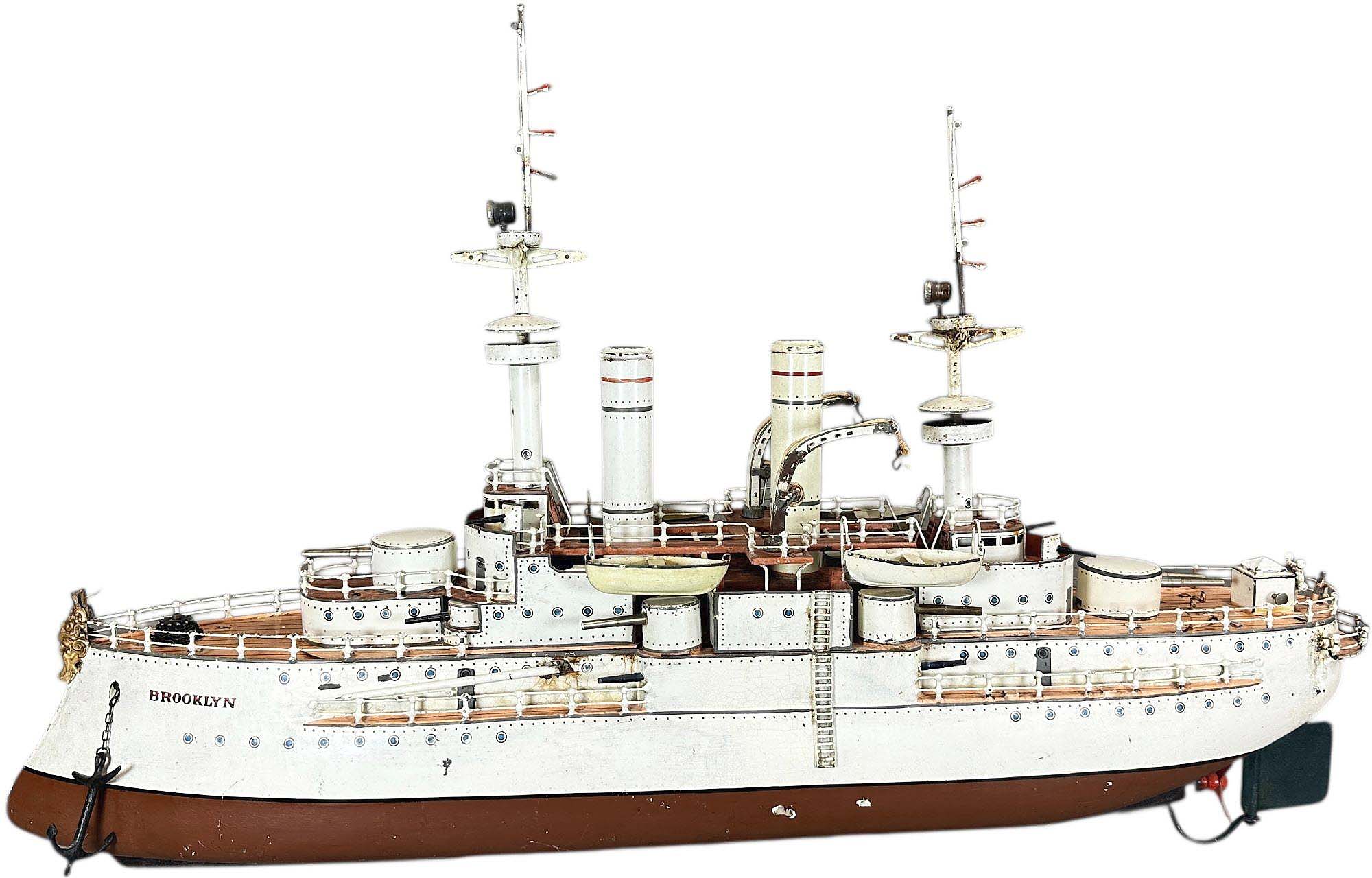 This Märklin Series II model of the battleship Brooklyn, circa 1912-15, 35 inches long, came with its original cradle stand and sailed to its new owner for $90,000 ($25/45,000).