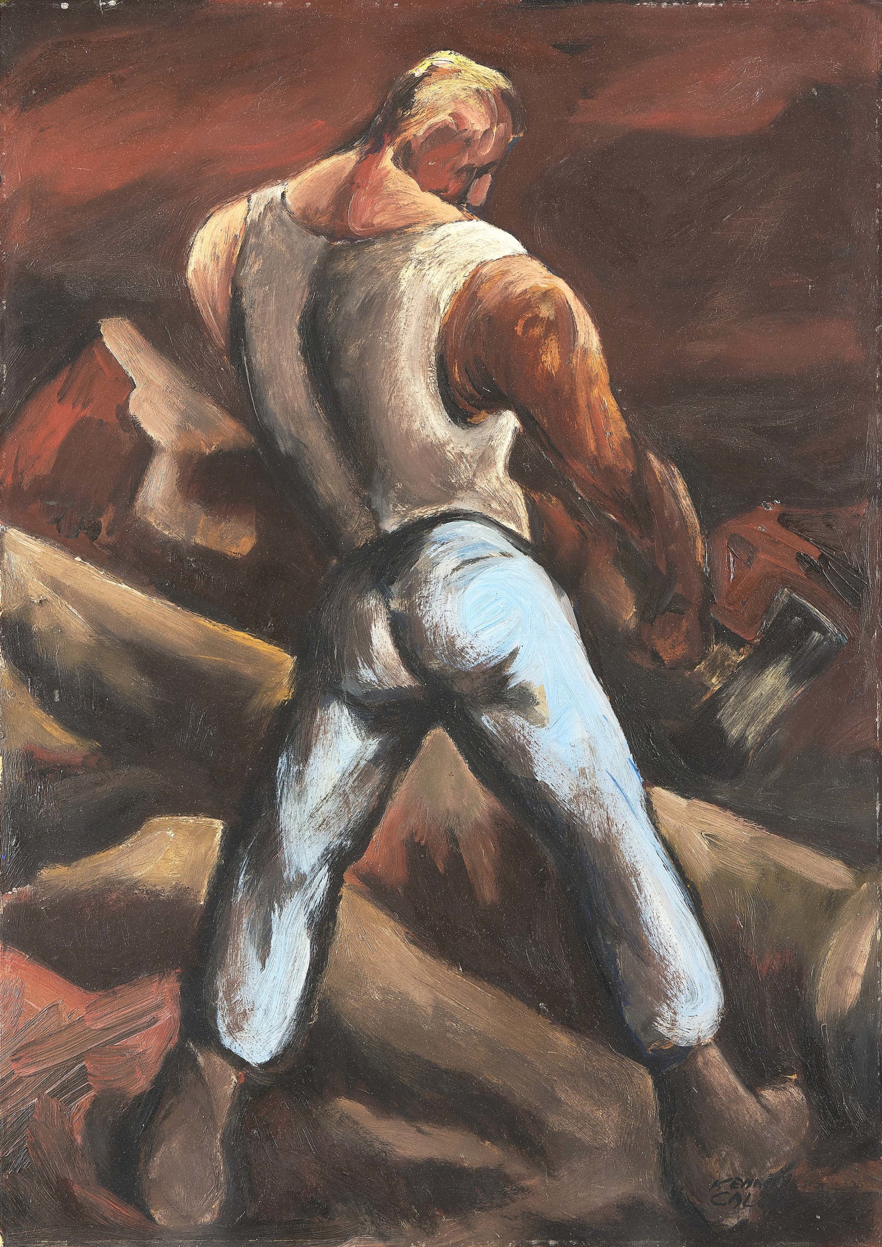 “Feller” by Kenneth Callahan (American, 1905-1986), 1934, oil painting, 31⅛ by 22 inches. Seattle Art Museum, Eugene Fuller Memorial Collection, 40.51, © Estate of Kenneth Callahan. Photo: Scott Leen.