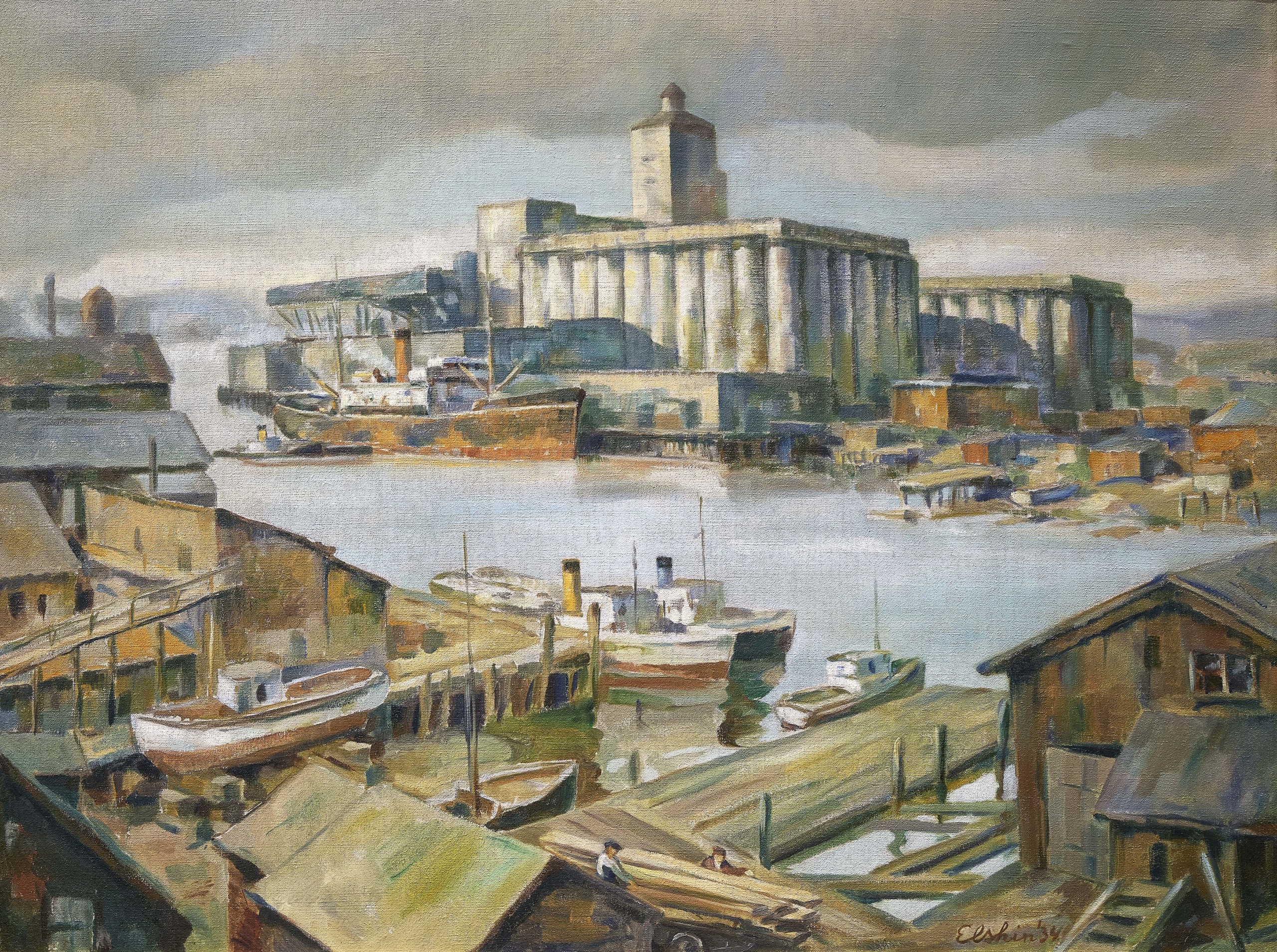 “Mill” by Jacob Elshin (American, 1892-1976), 1934, oil on canvas, 29 by 38 inches. Seattle Art Museum, Public Works of Art Project, Washington State, 34.138. © Jacob Elshin.Photo: Scott Leen.