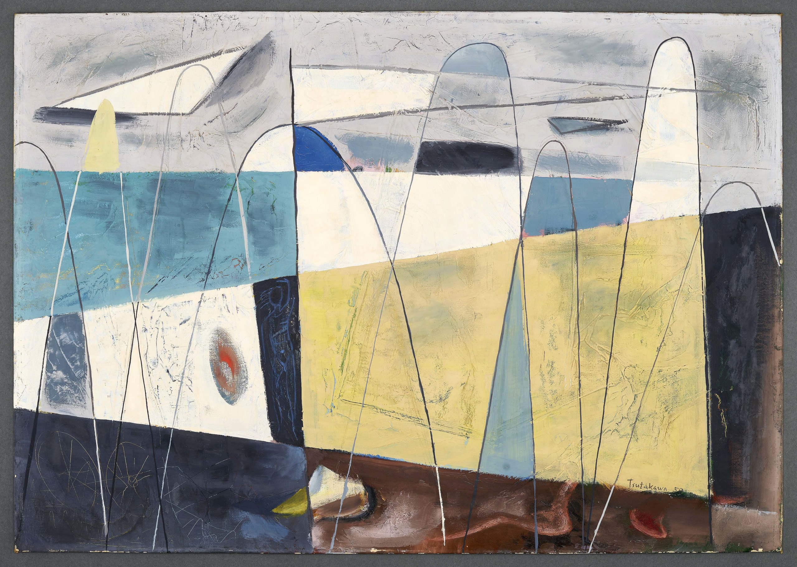 “The Ascent” by George Tsutakawa (American, 1910-1997), 1950, oil on canvas board, 21 by 30 inches. Gift of Mr and Mrs Dwight E. Robinson, 54.153. Photo: Scott Leen.