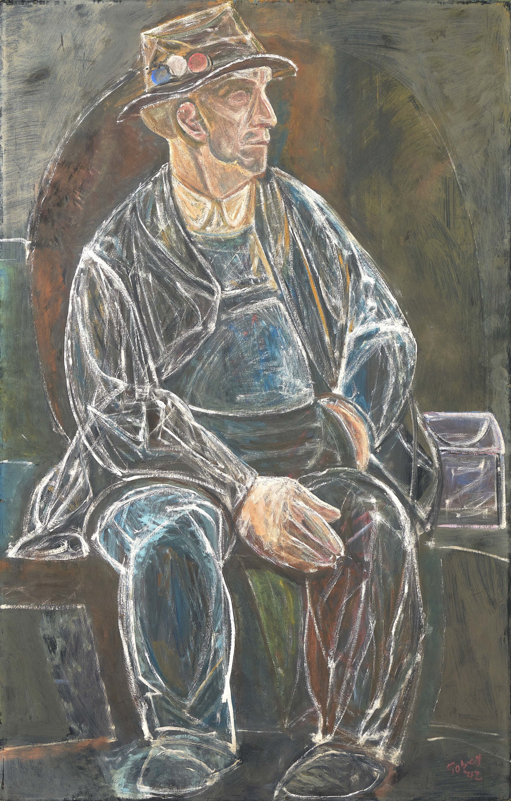 “Working Man” by Mark Tobey (American, 1890-1976), 1942, gouache on board, 43½ by 27½ inches. Seattle Art Museum, Eugene Fuller Memorial Collection, 42.33, © Mark Tobey / Seattle Art Museum. Photo: Scott Leen.
