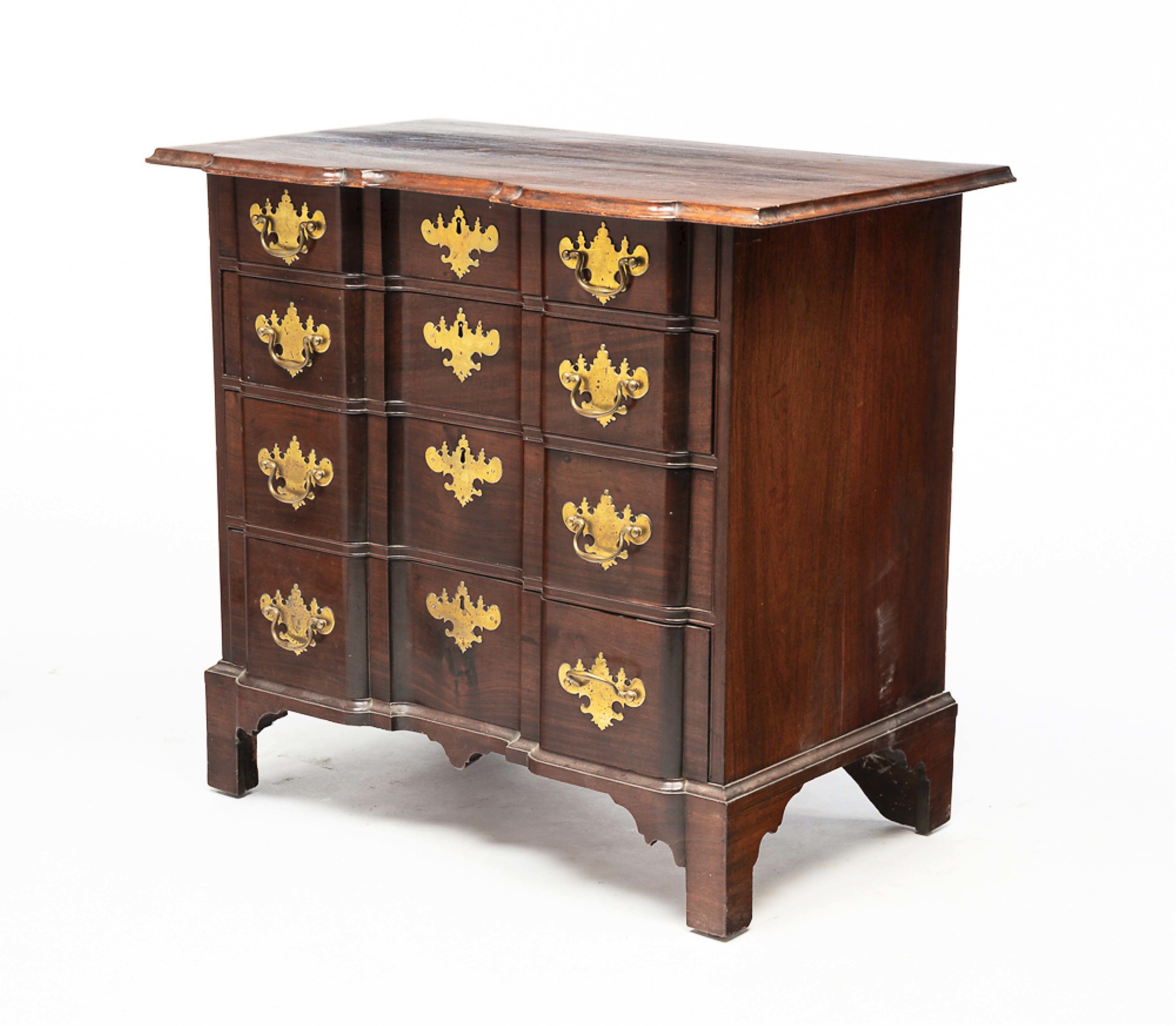 The weekend’s highest price, $24,600, was achieved by this diminutive Honduran mahogany Chippendale four-drawer blockfront chest from Massachusetts, third quarter of the Eighteenth Century, 30½ inches wide by 18½ inches deep ($20/30,000).