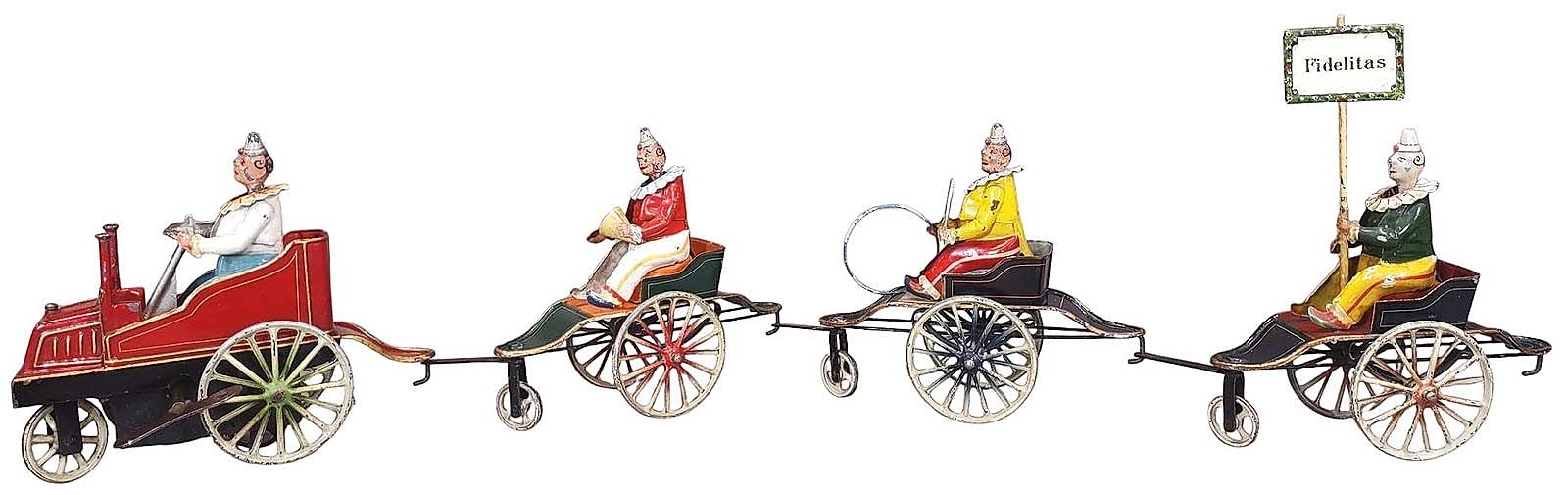 This four-piece Märklin Fidelitas clown train, 37 inches long total, earned the highest price of day one and both days overall at $75,000 ($60/90,000).