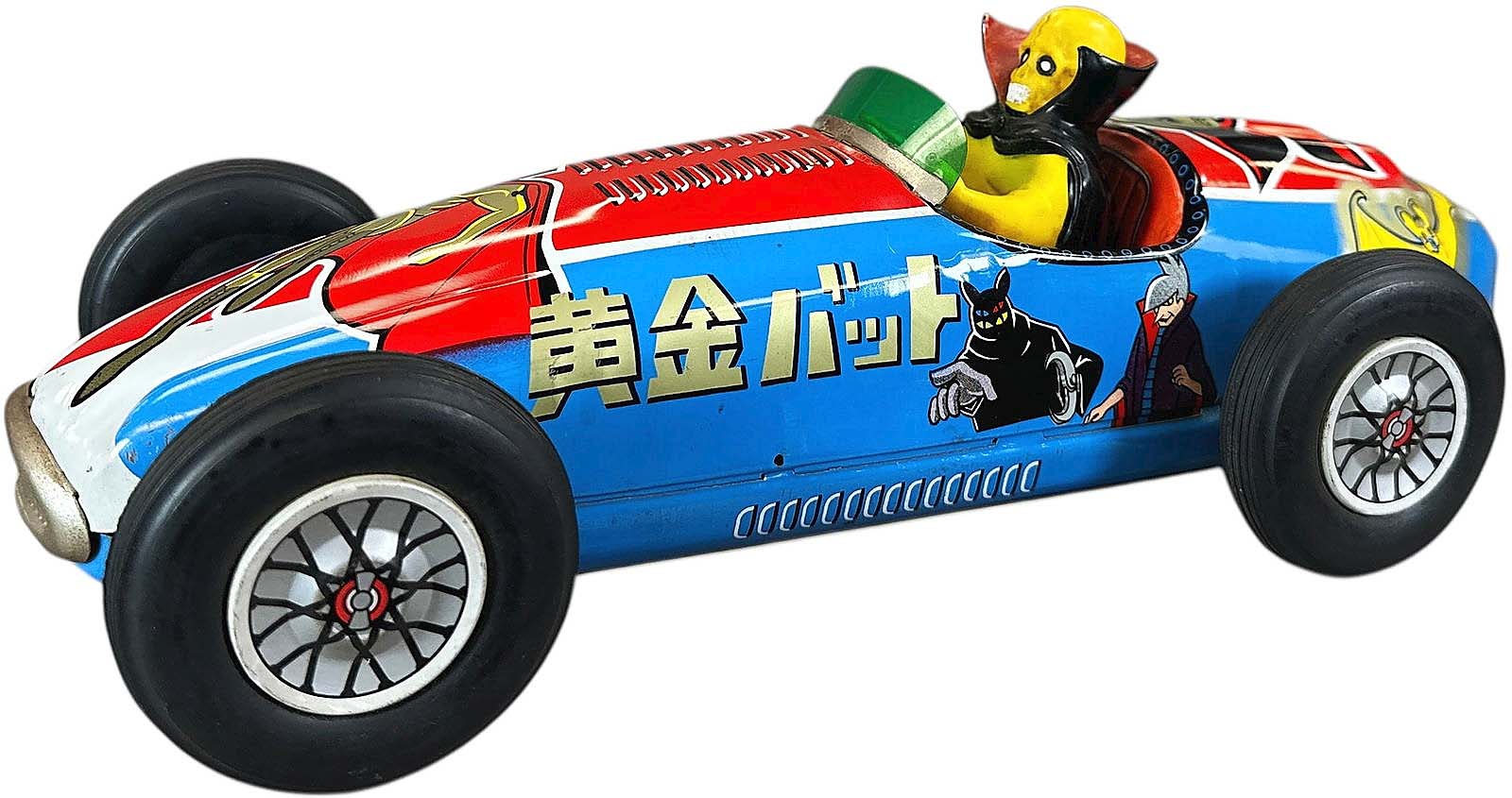 Complete with all-original colorful lithographed graphics, this Golden Bat racecar by the Japanese toy company Yonezawa, 16 inches long, drove across the finish line for $12,500 ($7/13,000).