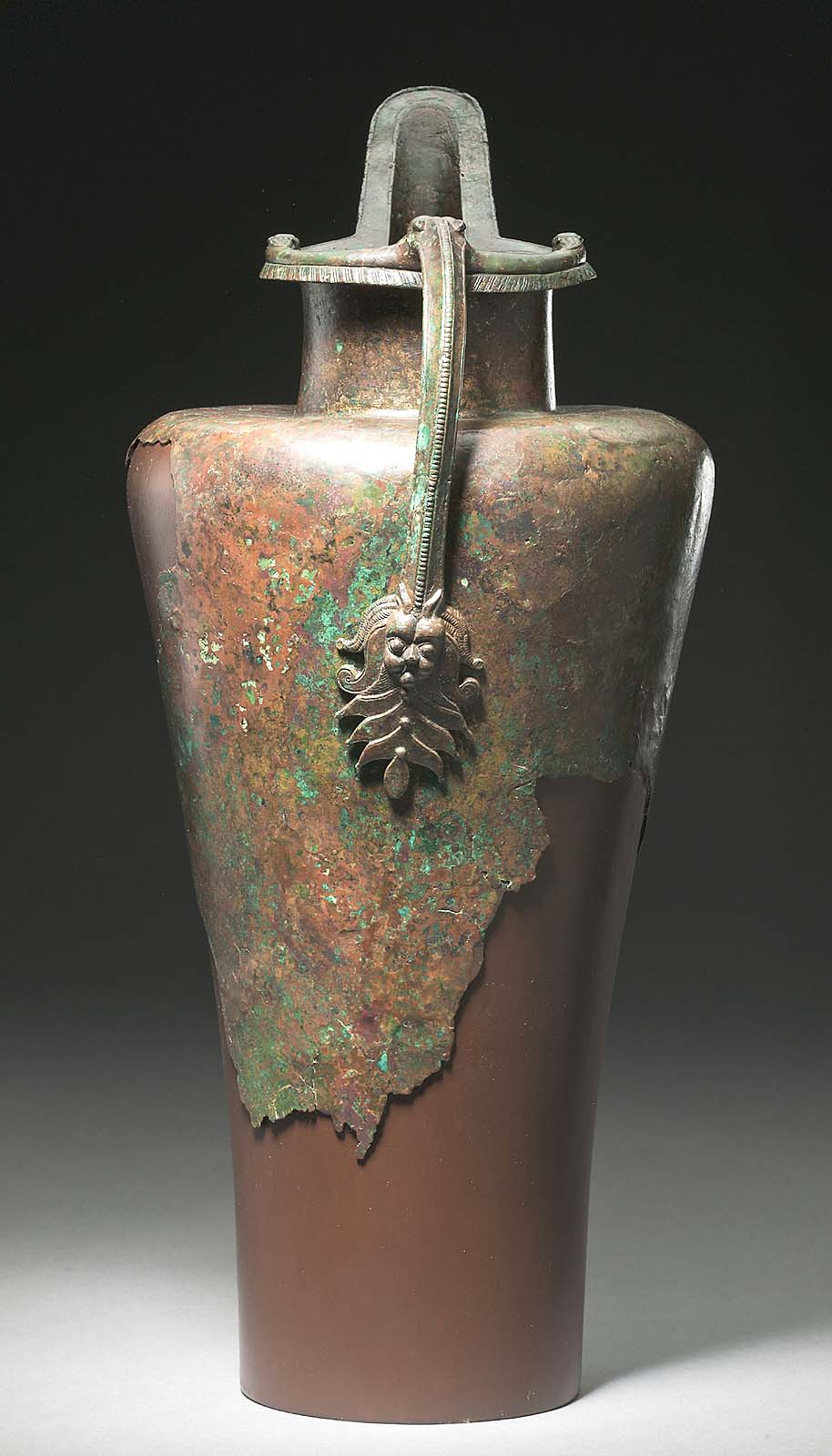 Fibula with two opposed animal foreparts and triangular pendants, circa 600 BCE, bronze, 18½ centimeters tall, from Grave 239 at Hallstatt, Austria. Naturhistorisches Museum, Vienna, 24407. © Naturhistorisches Museum, Vienna. Photo by Benedict Seidl.