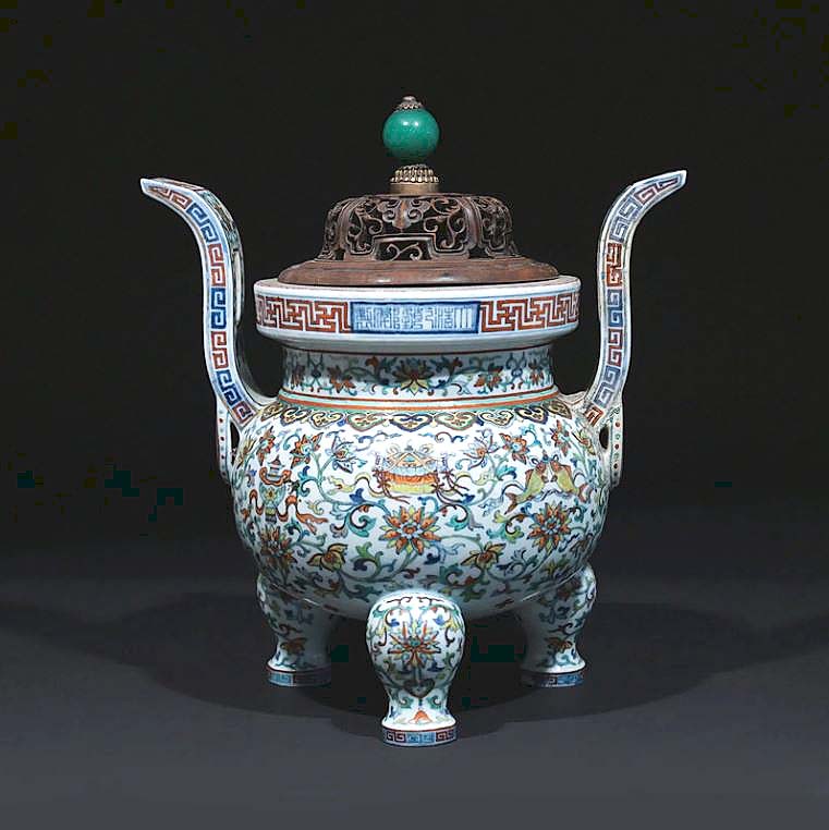 BEDFORD, N.Y. — Nearly 575 lots, sourced from local estates and collections, were the bill of fare in Butterscotch Auction’s December 7 Reflections of the Season sale. Earning top-lot status was an 11⅛-inch-tall Chinese doucai Eight Buddhist Emblems censer that had period Qianlong reign marks (1736-1795) and an old label inscribed “Nath’l L. Frear III.” Estimated at $15/25,000, the catalog noted provenance to a New York City family and comparisons to a similar example offered at Christie’s, Hong Kong, in November 2023. A local trade buyer prevailed over competitors to win it for $41,820, including buyer’s premium. A future issue will feature more highlights from this sale.