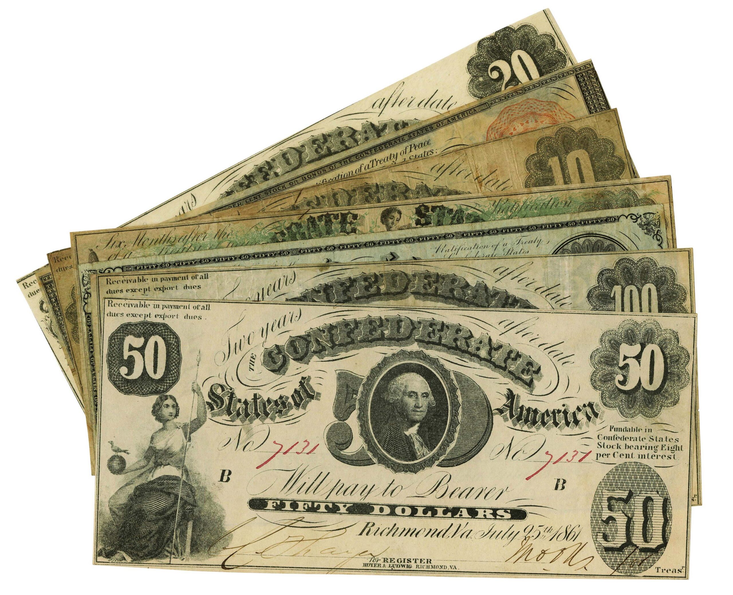 PORTSMOUTH, N.H. — Rising well past its original face value, a collection of 57 Confederate notes achieved the top result in Bray & Company’s April 25 auction of The Collector’s Cabinet. The sale featured 228 lots of rare books, maps, manuscripts, prints, paintings, historic photographs and more from estates across New England. The Civil War-era currency exceeded its $200/300 estimate to achieve $7,500, including buyer’s premium. An upcoming issue will feature further coverage of the auction as a whole.