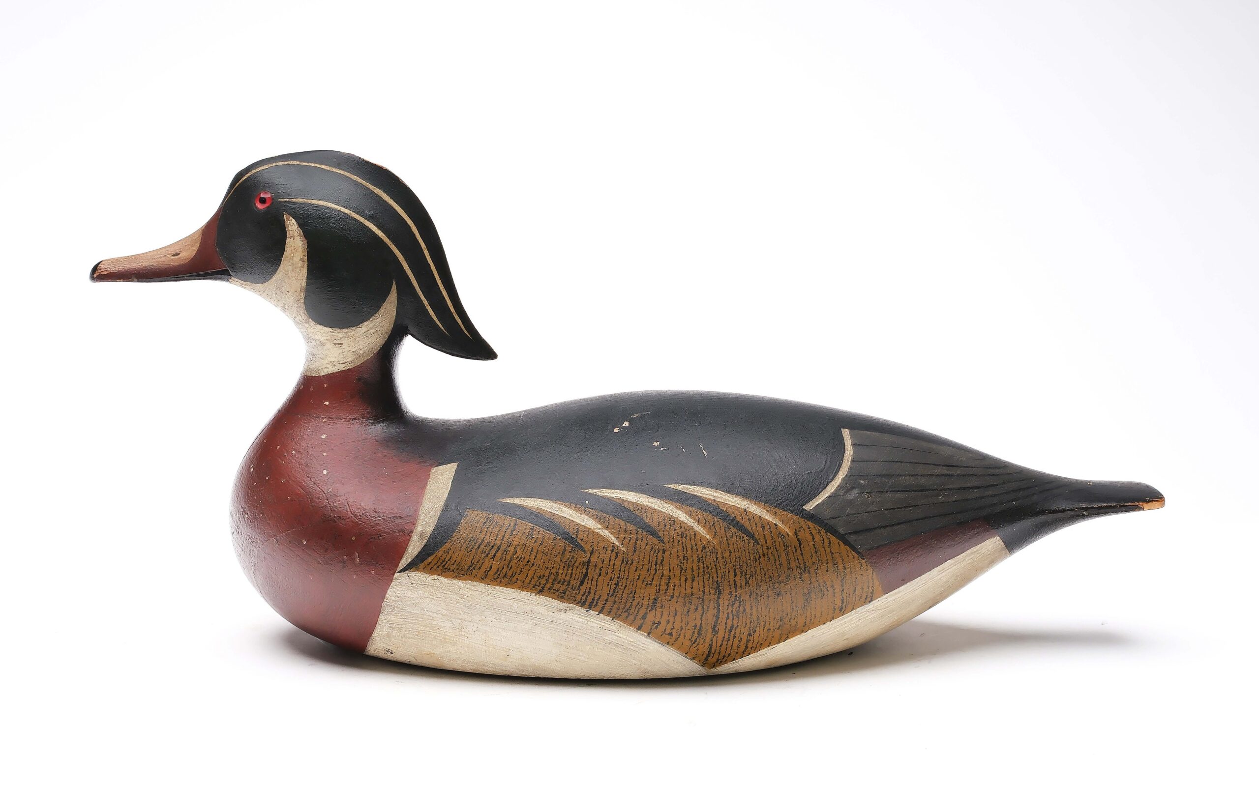 ST MICHAELS, MD. — April 23-24 saw 635 lots cross the block in Guyette & Deeter’s Decoy and Sporting Art Auction, which featured several prominent decoy collections. Highlighted most honorably on day one was the first session of the James and Diane Cook collection, the “Super Bowl” of decoy collections. An “exceedingly rare and important” wood duck with an extended crest by Joseph Lincoln of Accord, Mass., from the Cook collection took the crown, selling for $1,250,000 with premium. One of three known Lincoln wood ducks with its original paint and in untouched condition, the decoy had well-documented and extensive provenance and measured 15½ inches long. Additional highlights from both days of the sale will be featured in an upcoming issue.