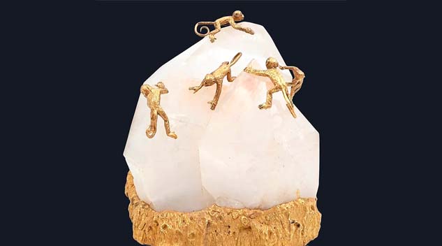 WINDSOR, CONN. — David Webb may have been feeling playful when he created an 18K gold and rock crystal monkey sculpture, but for buyers at Nadeau Auction Gallery, it was serious business. The 9½-inch tall piece featuring four monkeys scrabbling up the rock was the top lot of Nadeau’s Annual New Year’s Day Auction, January 1-2, when it attained $212,500, including premium, selling to a phone bidder. Crossing the block during the second day of the sale, this piece once belonged to the Webb brand’s former CEO, the late Nina Silberstein, the first woman to run a major jewelry company in the US, and a close friend of the jeweler. A complete report on the auction will appear in an upcoming edition.