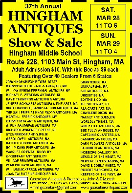 Goosefare Antiques & Promotions, John & Elizabeth DeSimone, PO Box 45, Saco, Maine 04072 800-641-6908 email:[email protected] www.goosefareantiques.com