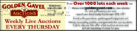 Weekly Live Auctions Every Thursday — Over 1000 lots each week — Please visit goldengavel.com to view photos or visit auctionzip.com and search our Auctionzip Auctioneer ID#: 2791 Email with questions: [email protected] Always accepting quality consignments for our auctions. Call to discuss. We offer a full auction service and will sell anything of value for […]