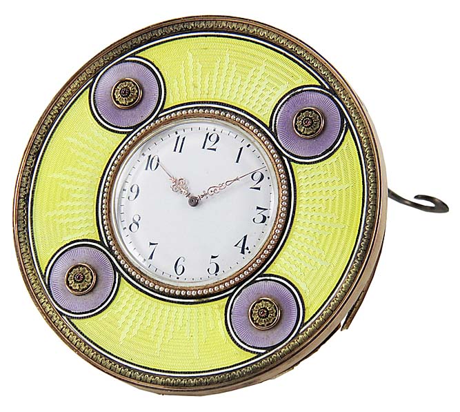 BEVERLY, MASS. — Two days and more than 1,000 lots made up Kaminski’s April Estates Auction, conducted April 18-19. Day one of the sale highlighted property from the historic Second Congregational Church of Beverly, Mass., while day two’s featured collection was that of the late Thomas Nicholson (Palm Beach, Fla., and Stratham, N.H). The top lot, sold on day two from the Nicholson collection, was a Fabergé silver-gilt and guilloché enamel desk clock bearing the mark of St Petersburg workmaster Mikhail Perkhin, best known for his oversight of the Imperial Easter Eggs. The clock, which measured 4½ inches in diameter, had a circular face was surrounded by a yellow border and four additional circular designs. It far surpassed its $15/25,000 expectations, ticking to the high price of $143,750, including buyer’s premium. Additional highlights from both days of the sale will be featured in an upcoming issue.