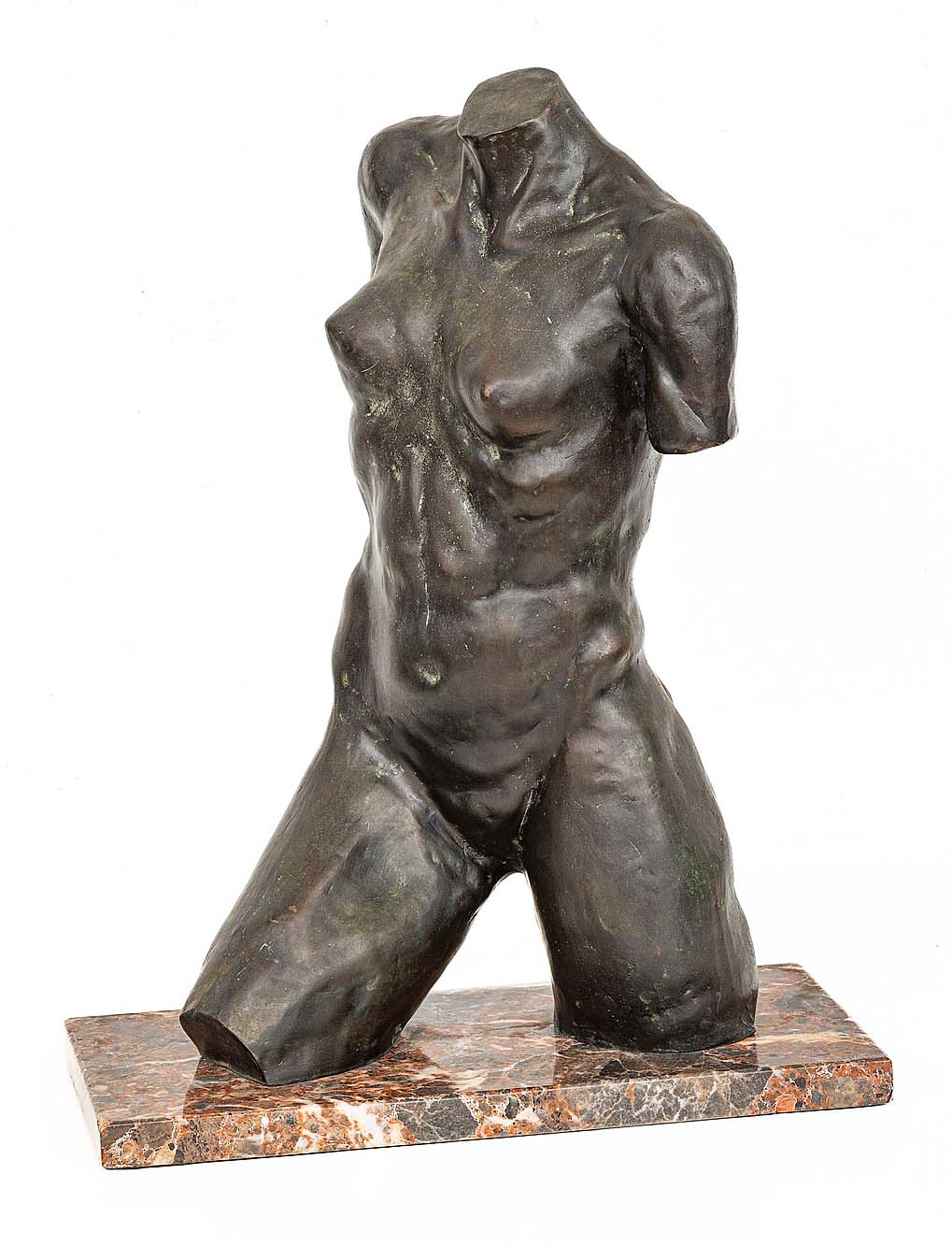 Other sculpture highlights included a circa 1920-30 cast of Auguste Rodin’s “Torse Féminin Debout (Torso of a Standing Female),” which sold for $13,640. This piece was a posthumous lost wax cast and bore the “F. Barbedienne Fond” foundry stamp — the gold standard in fine art bronze casting. It descended through family to a private collector in Lake Ann, Mich., and was snapped up by an astute long-time DuMouchelles client from Maine, who bid by phone.