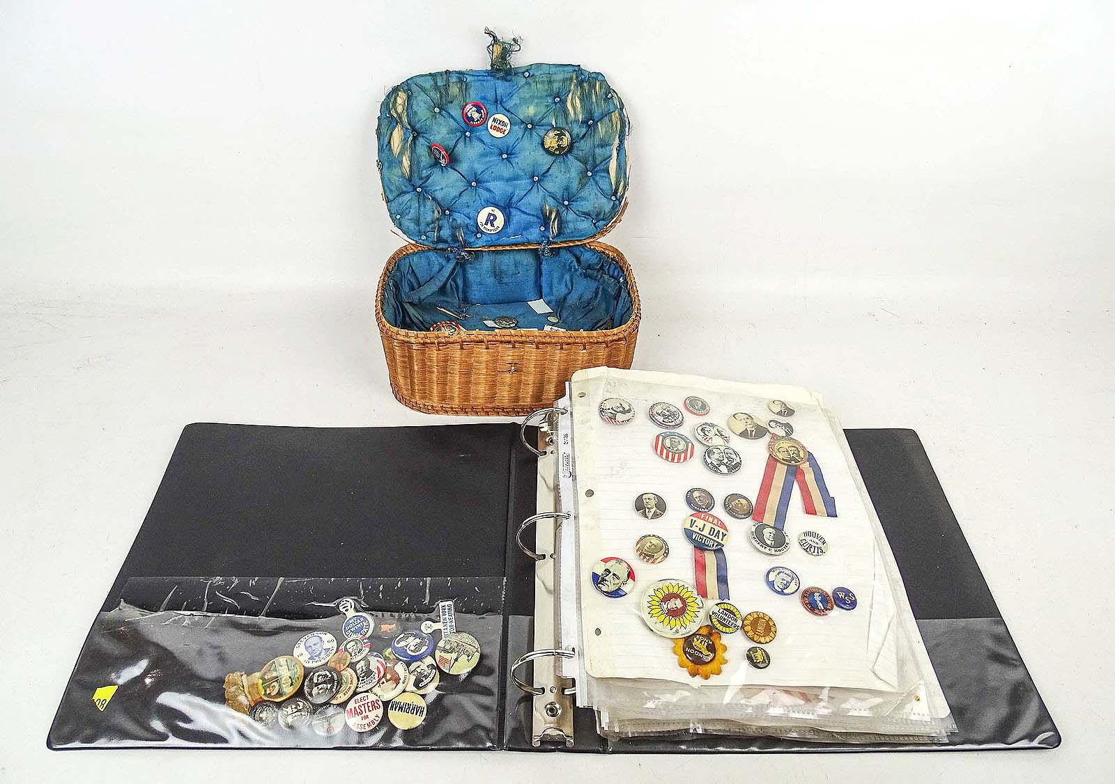 This collection of political buttons that survived the campaigns of Harding, Hoover, Nixon, Johnson, Kennedy, McGovern, Eisenhower, Roosevelt, Rockefeller and more sold for the highest price of the two-day sale on the second day: $6,000 ($50/75).