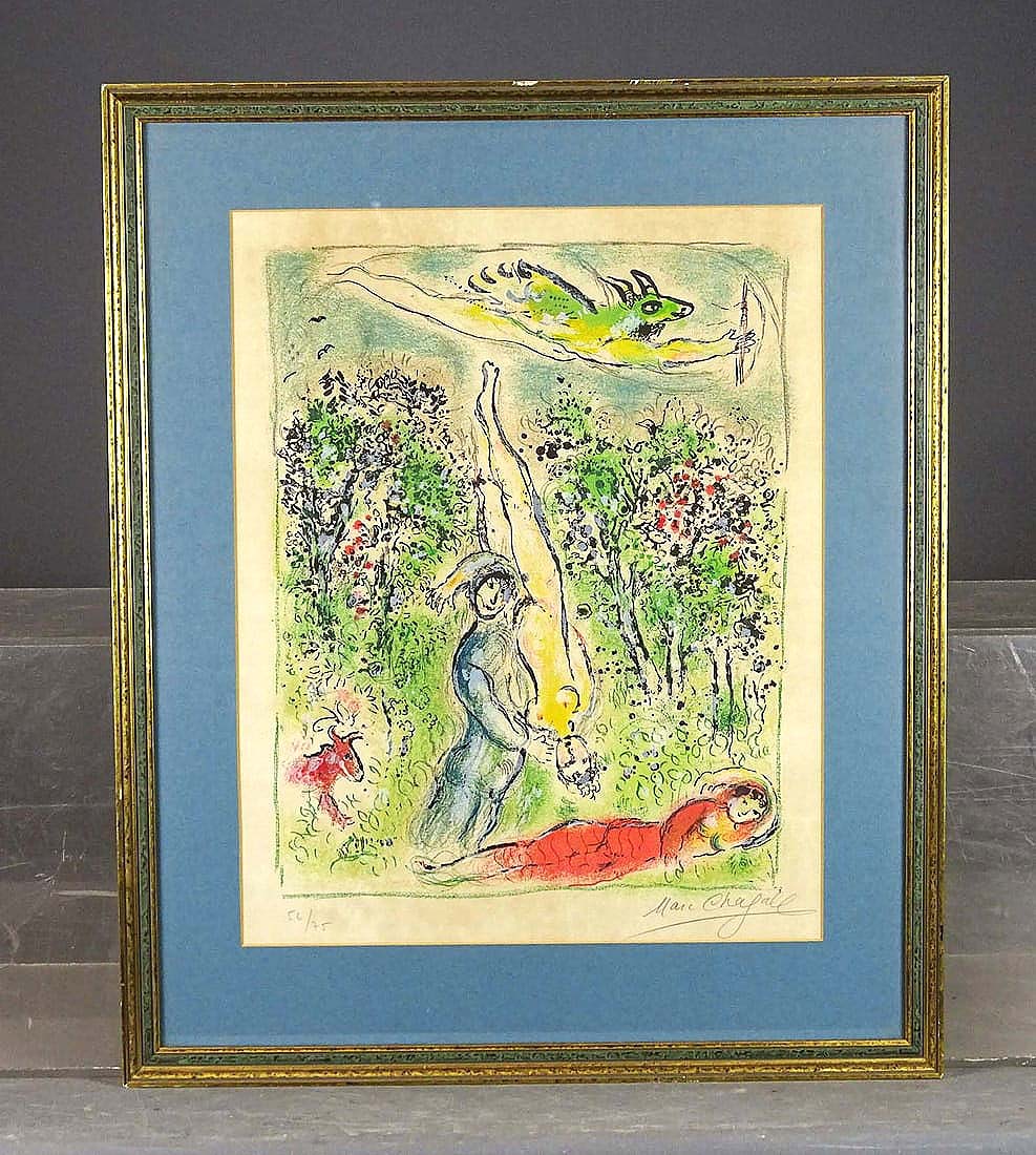 Heading to Poland for $4,500 was this pencil-signed lithograph by Marc Chagall (1887-1985), numbered “#56/75,” 26½ by 22 inches framed ($75/100).