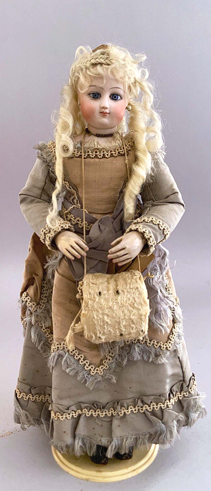 HILLSBOROUGH, N.H. — Advertised as a “sure cure for Cabin Fever” was Withington Auction’s April 2 online-only Dolls & Accessories at Auction sale, which offered 242 lots of dolls, toys, miniatures, fashion, vintage Christmas and various other antiques, including thimbles, Jumeaux and Steiff. The highest-selling lot of the day was a 13-inch-tall French fashion doll with a curly blonde mohair wig and blue glass paperweight eyes. The doll had wooden arms and wore a blue-gray walking suit and brown boots. After 26 bids back and forth, it sold for $2,950, with premium. Additional highlights will be included in an upcoming issue.