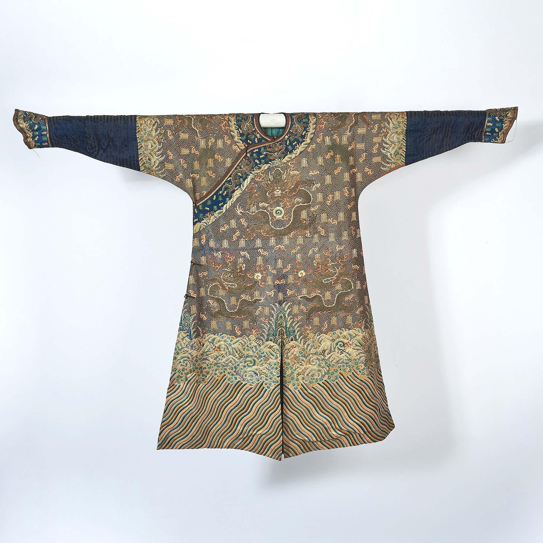 Also from the Redden collection was a Chinese brown-ground embroidered silk Baishou dragon robe, or jifu, from the Qianlong period. “I can honestly say it may be the rarest robe I’ve sold, if not the most valuable. The condition issue with this robe is that it had been exposed to sunlight and the color was affected. But that being what it is, it was the rarest lot in the sale because it was a very unusual configuration.” The catalog noted that Baishou robes from the period are “exceptionally rare,” and this one was likely made for an imperial nobleman. Cervantes continued to explain, “It was probably made for a birthday celebration. You know, we go and get a paper party hat, but this was a month’s long creation with very intricate dragon and Shou characters, which are used to wish happy birthday, giving blessings for a long life.” The robe sold for $38,400 to a knowledgeable individual who Cervantes described as “the happiest buyer.”