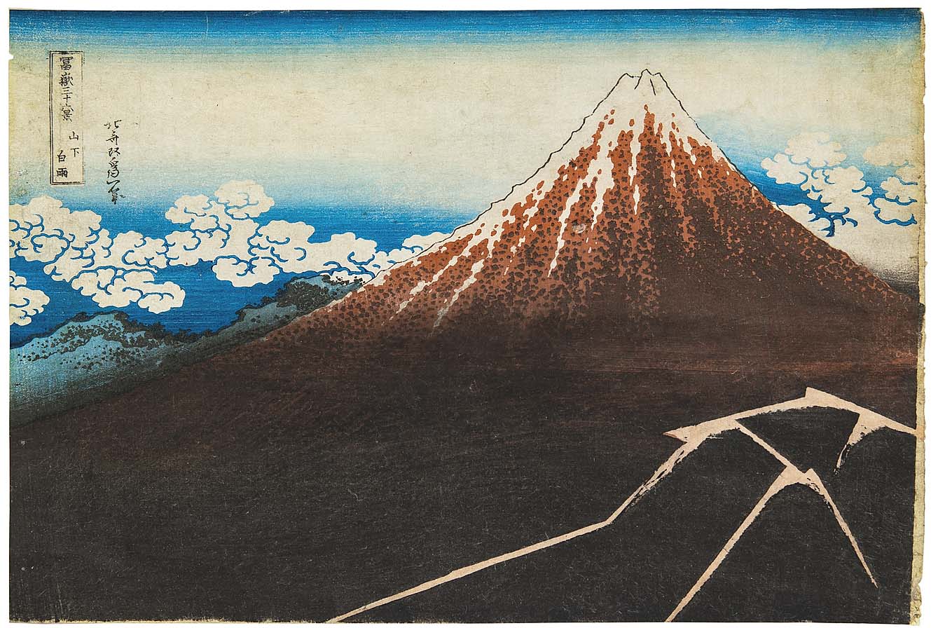 The leading print, Kawase’s “A Fine Winter’s Sky at Miyajima,” exhibited the modern techniques and, coming from a private New York collection, it realized $35,200. More traditional, Katsushika Hokusai’s “White Rain Below the Mountain [Black Fuji]” from “Thirty-Six Views of Mt Fuji” (circa 1831) earned the category’s second-highest price: $32,000. This print had provenance to the late Sotheby’s auctioneer David Redden.