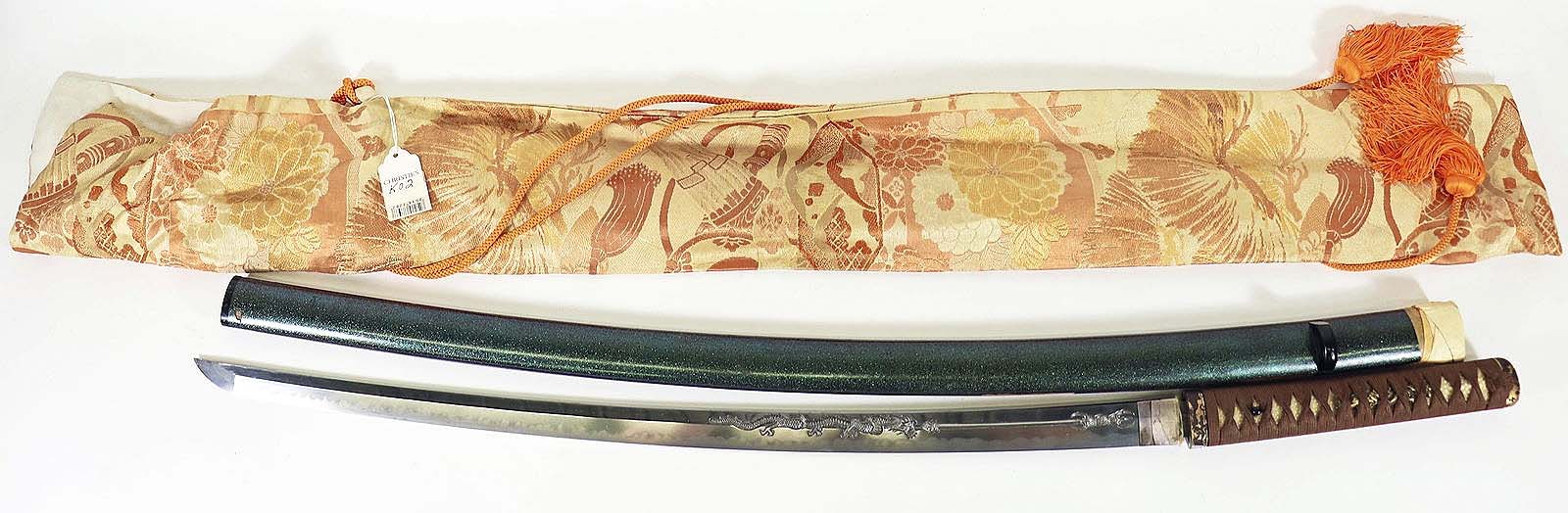 VERO BEACH, FLA. — A curated sale featuring the collection of long-time collector Bob Lighter was conducted by Vero Beach Auction on February 21. The Japanese & Asian Art Auction featured 164 lots of Edo and Meiji period items, including katanas and daggers, artwork, porcelain, tsubas, samurai items, signed pieces and more. The highest-earning lot was a 27½-inch-long katana with a black and brown woven handle and two menuki, or decorative metal ornaments, which sliced down its $5,000 high estimate to make $30,000 with premium. The katana’s blade contained a detailed scene of a serpent dragon and had a green scabbard and orange and silk bag. Additional highlights from this sale will be featured in an upcoming issue.