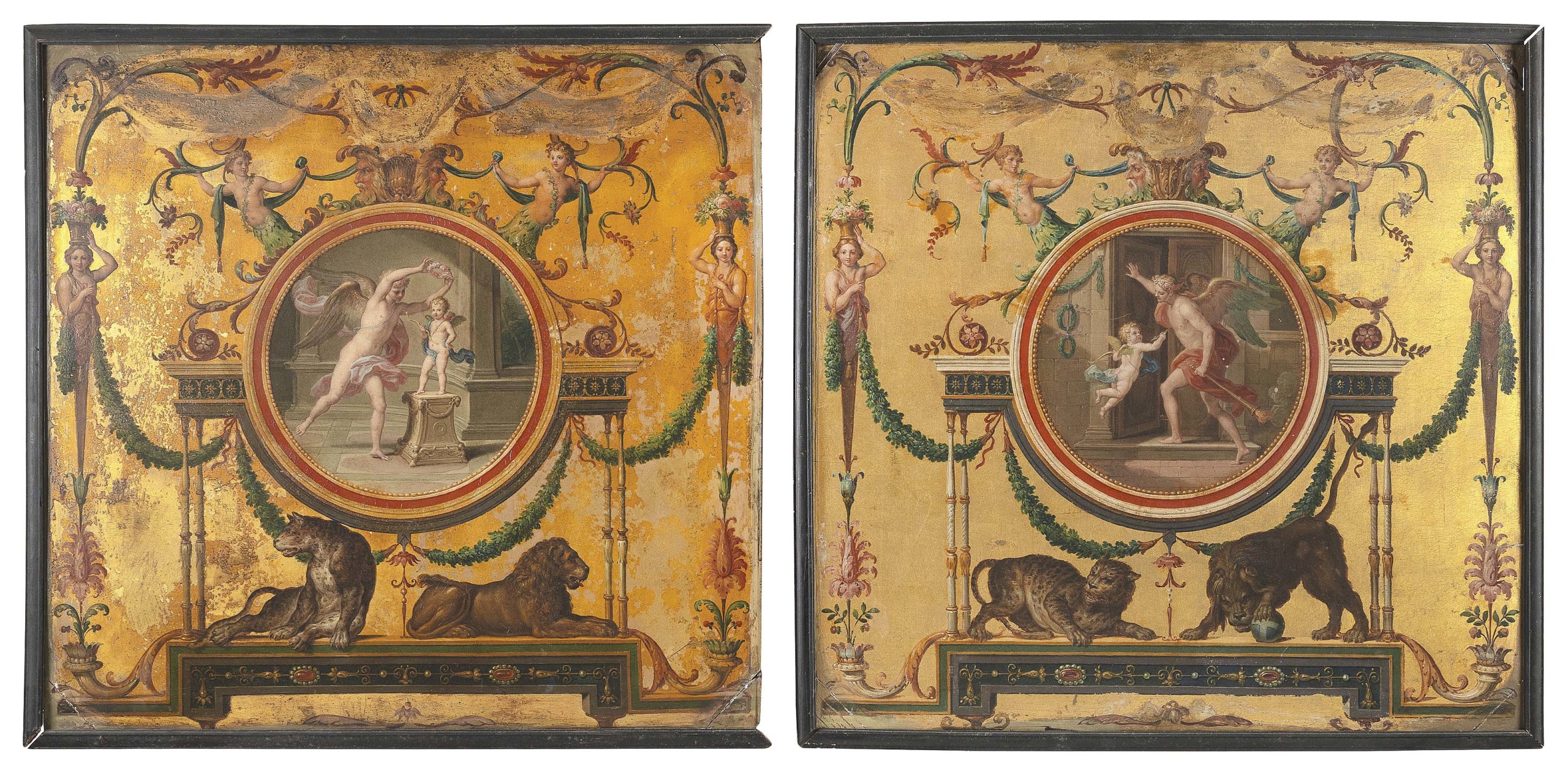 This pair of Continental School decorative gilt panels depicting classical scenes outperformed its $1,200 high estimate, earning $5,440.