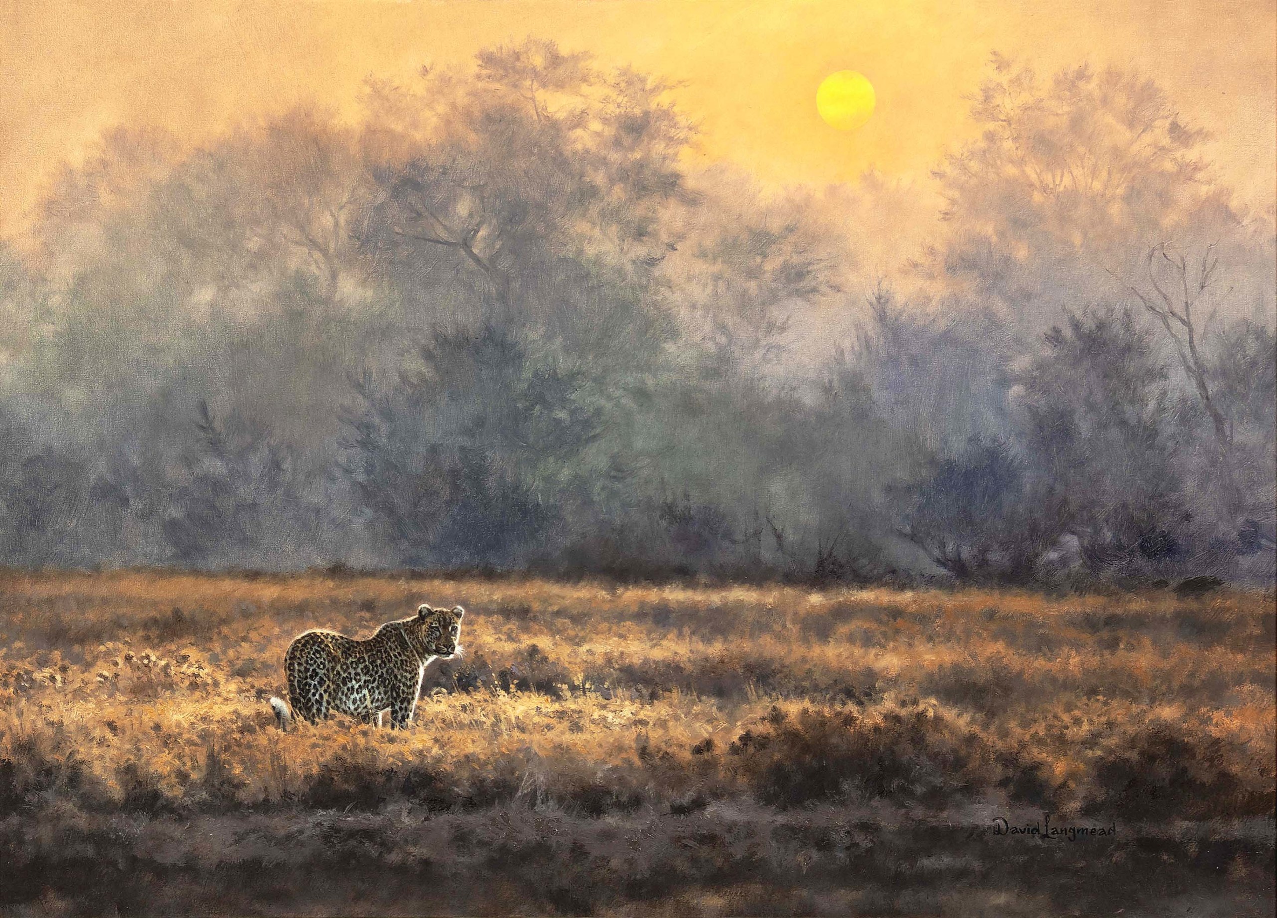 Bidders chased “Leopard on the Savanna” by David Langmead (Zimbabwean, b 1965), oil on canvas, 24¾ by 31¾ inches framed, to $7,500 ($1,5/2,500).