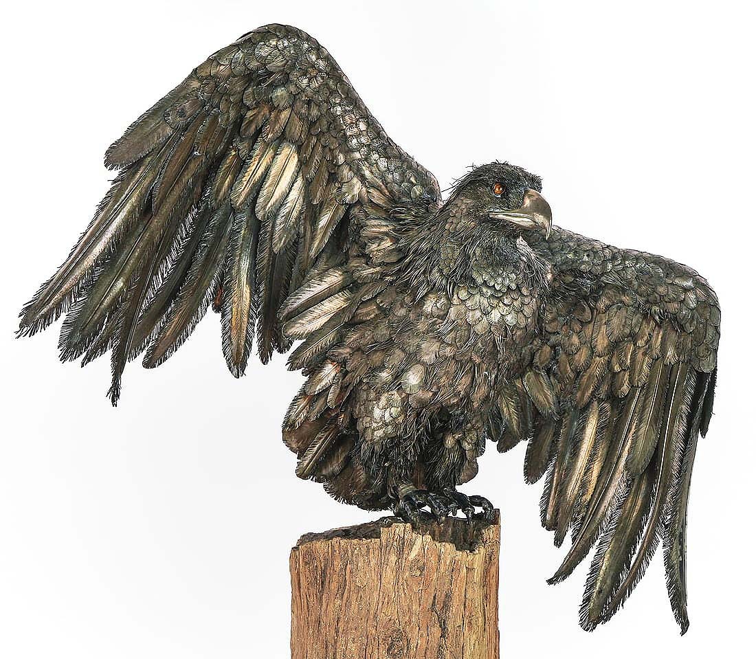 Though not signed for a specific member of the Buccellati family, the firm believed this 800 coin silver eagle, 28 inches tall by 23 inches wide (including 11-inch-tall base), may have been made by Mario Buccellati; it was bid to $14,080 ($12/18,000).