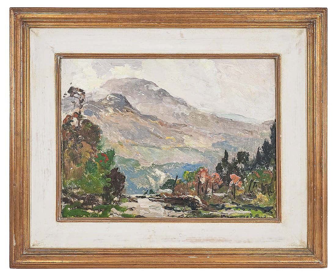 “A View of Mount Mansfield from Stowe Hollow” by Chauncey Foster Ryder (American, 1868-1948), oil on board, 18½ by 22½ inches framed, hit its apex at $7,040 ($4/8,000).