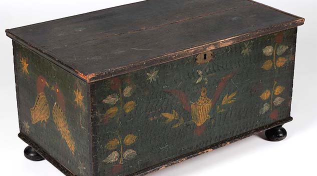 MOUNT CRAWFORD, VA. — The collection of Benny Long headlined Jeffrey S. Evans & Associates Fall 2025 Premier auctions, bookended by about 450 lots of glass, ceramics and lighting on November 20, and more than 525 lots of Americana on November 22. The Long collection — comprising a 165-lot single-owner catalog and selling alongside property from other consignors on November 21 — earned the strongest prices of the week, including the highest of all: $106,250, including premium, which was realized by two lots. The first to hit that mark was the Long collection’s cover lot: a Stirewalt family paint-decorated yellow pine child’s or diminutive blanket chest from the Shenandoah Valley of Virginia that was included in Marshall Goodman and J. Roderick Moore’s “Painted Boxes and Miniature Chests from Shenandoah County, Virginia: The Stirewalt Group,” published in the September 2007 issue of The Magazine Antiques. According to Will Kimbrough, the firm’s vice president and department head of Americana and fine art, it was purchased by a collector in the Shenandoah Valley. An upcoming issue will feature more highlights from the Long Collection, and others.