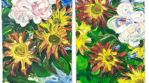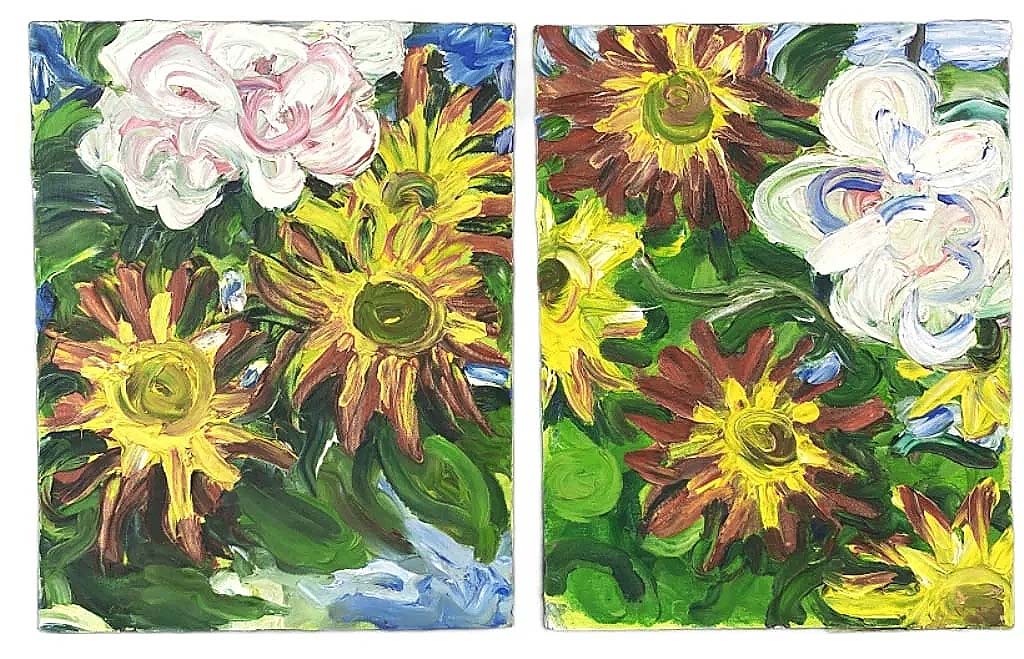 The top lot of the auction was this colorful 1952 painting of flowers by Chuck Connelly titled “Invaders I & II,” which realized $5,937.