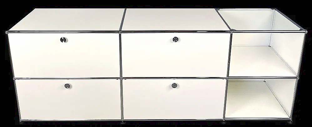 This USM Haller Midcentury Modern-style modular storage unit, 29 ½ inches tall by 79½ inches wide by 20½ inches deep, brought $3,125.