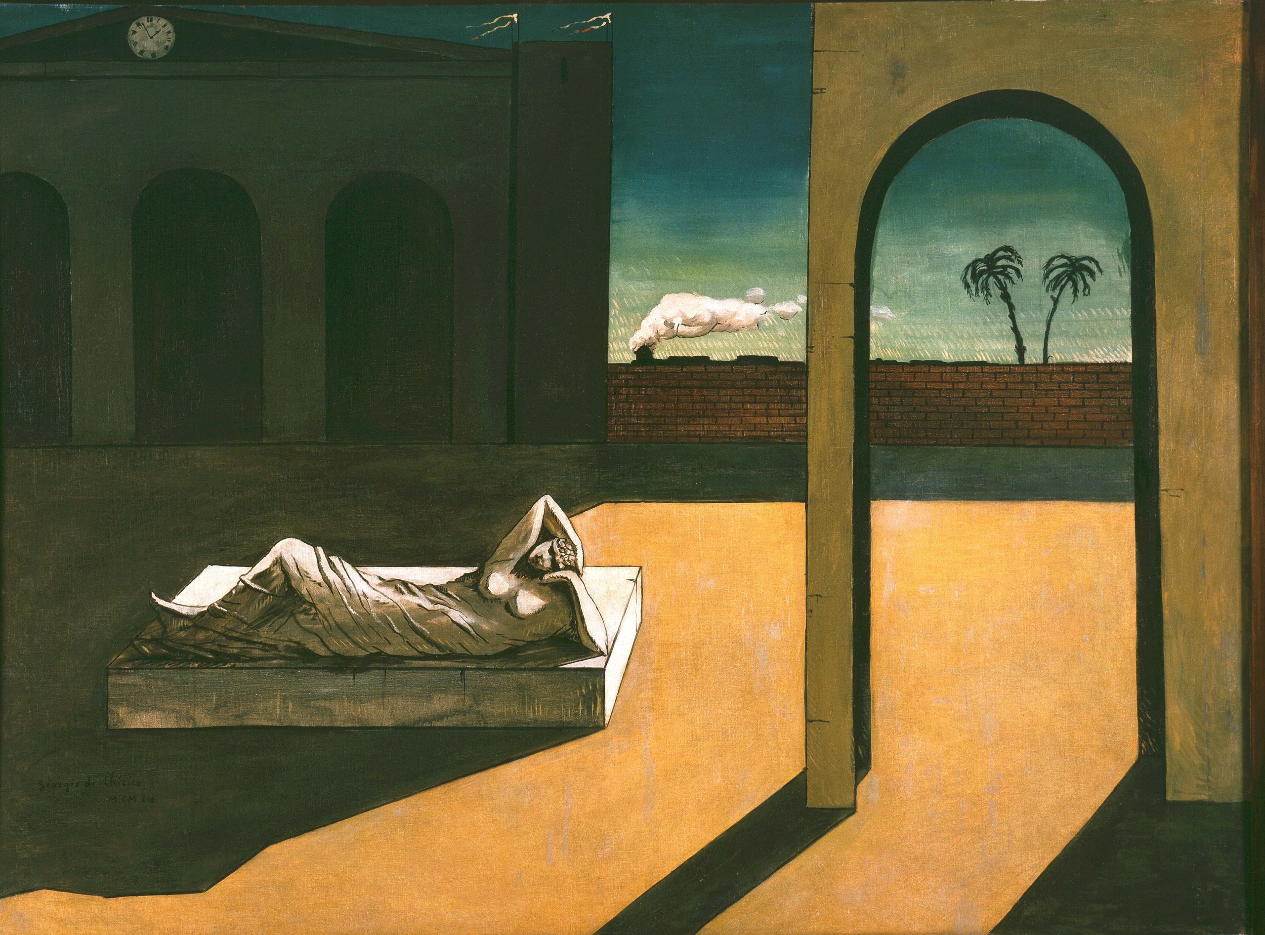 “The Soothsayer’s Recompense” by Giorgio de Chirico (Italian, born Greece, 1888-1978), 1913, oil on canvas, 53⅜ by 70⅞ inches. Philadelphia Art Museum: The Louise and Walter Arensberg Collection, 1950.